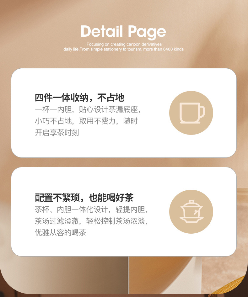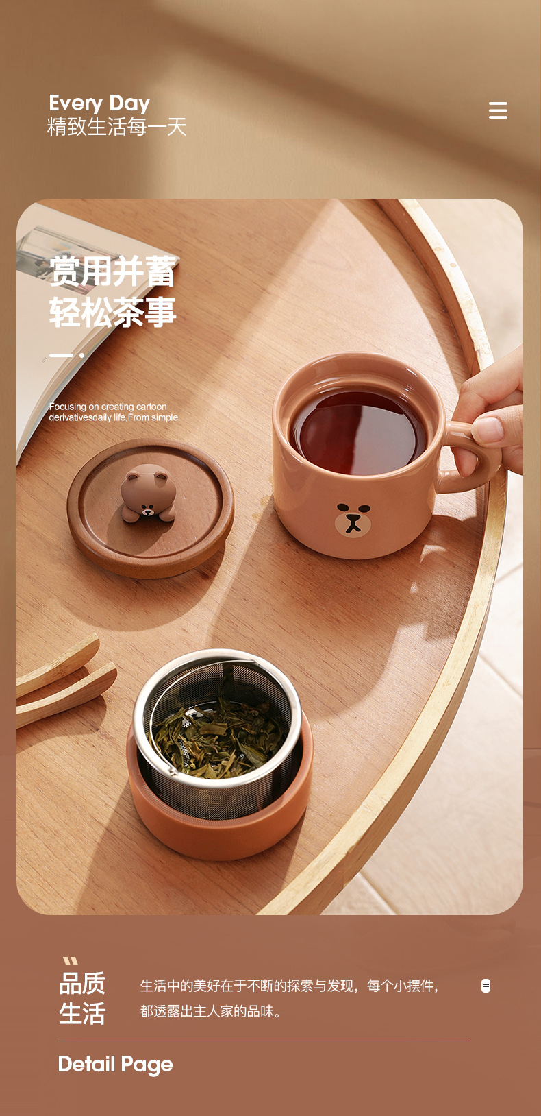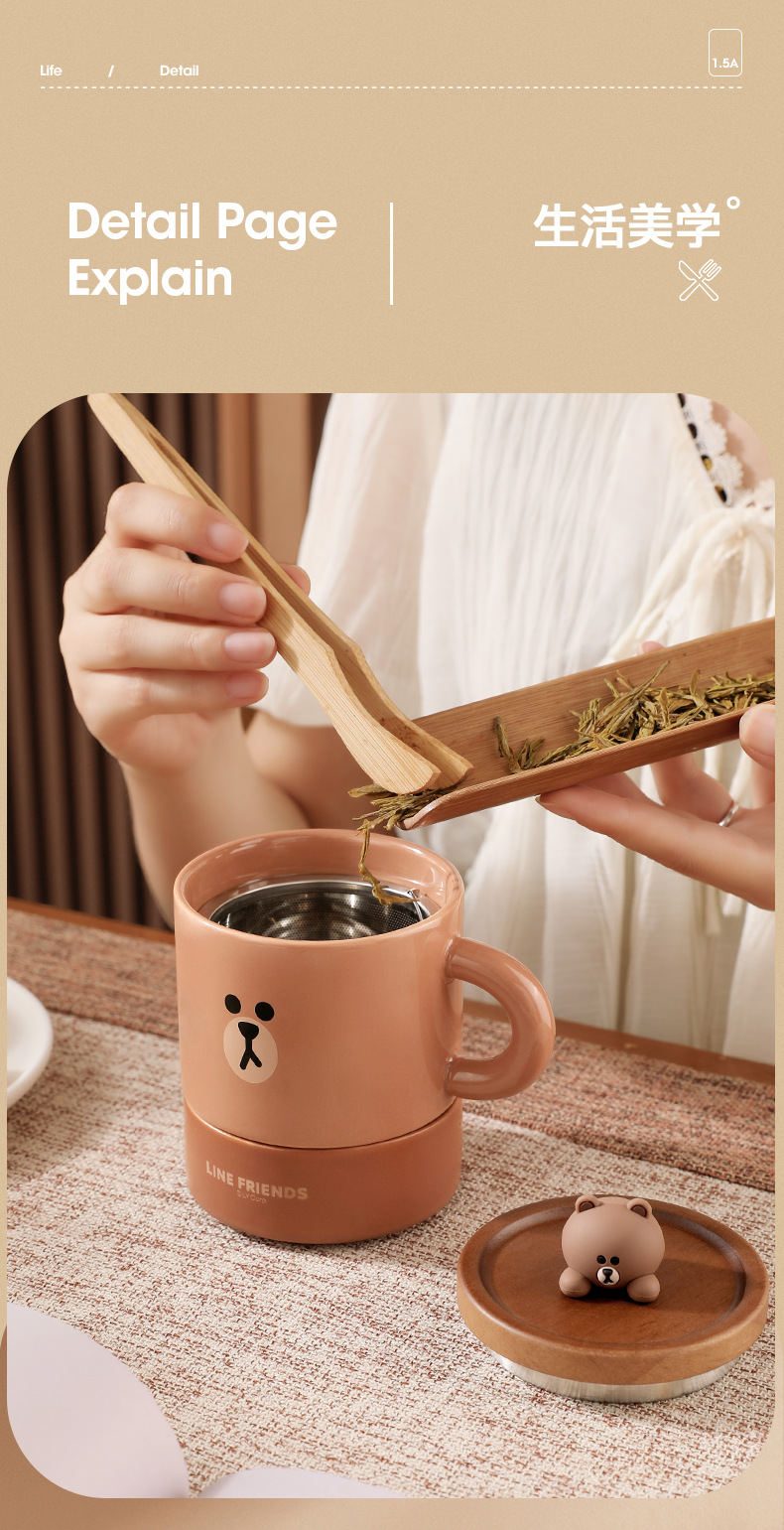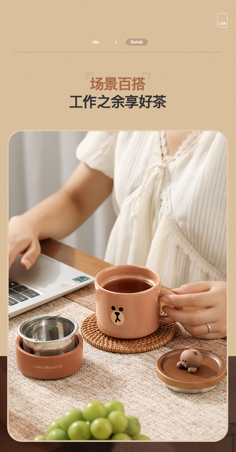 布朗熊陶瓷茶杯套裝高級感茶水分離泡茶杯子辦公室帶過濾茶漏水杯