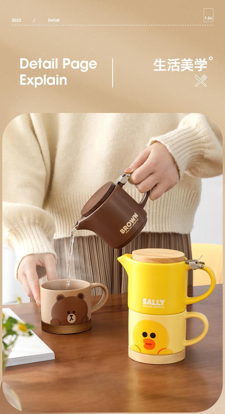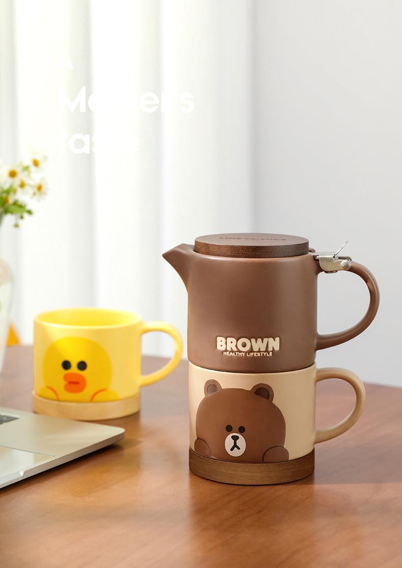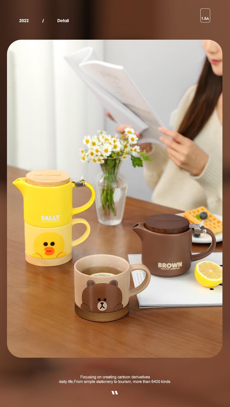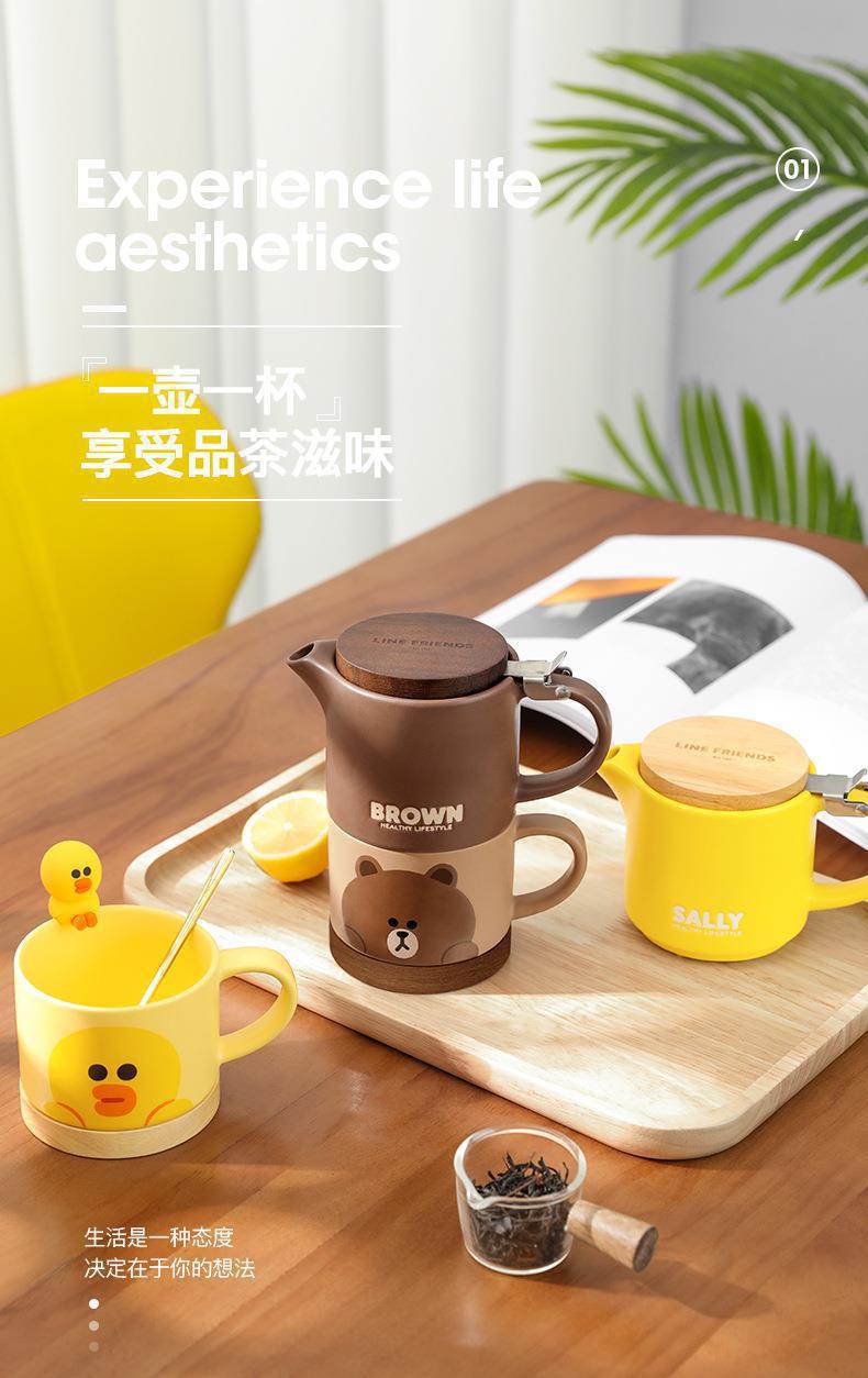 LINE FRIENDS輕奢陶瓷茶壺套裝家用泡茶杯子大容量功夫茶具單壺