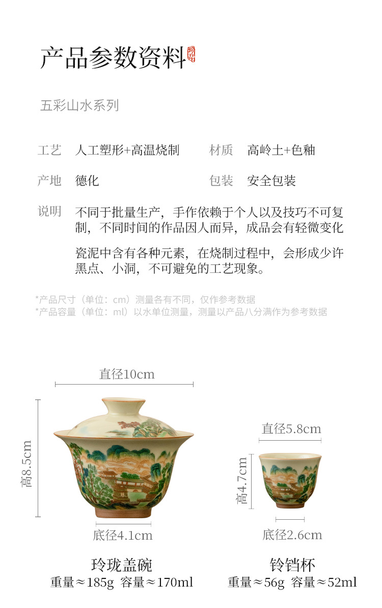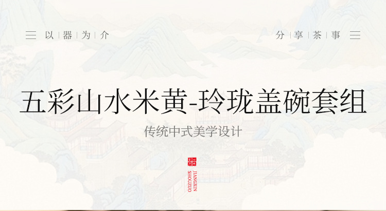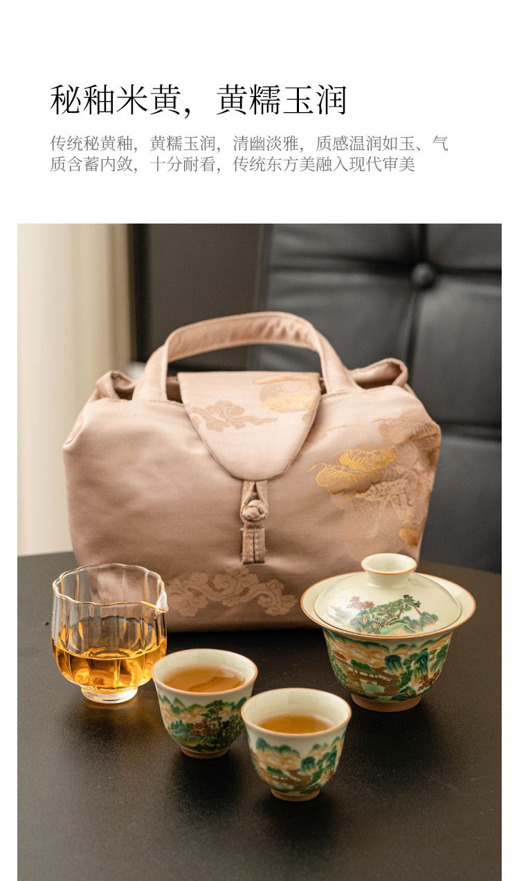 | 顔色 | 3五彩山水秘釉米黃_玲瓏蓋碗+2茶盃+花瓣公道盃【織錦包】 |