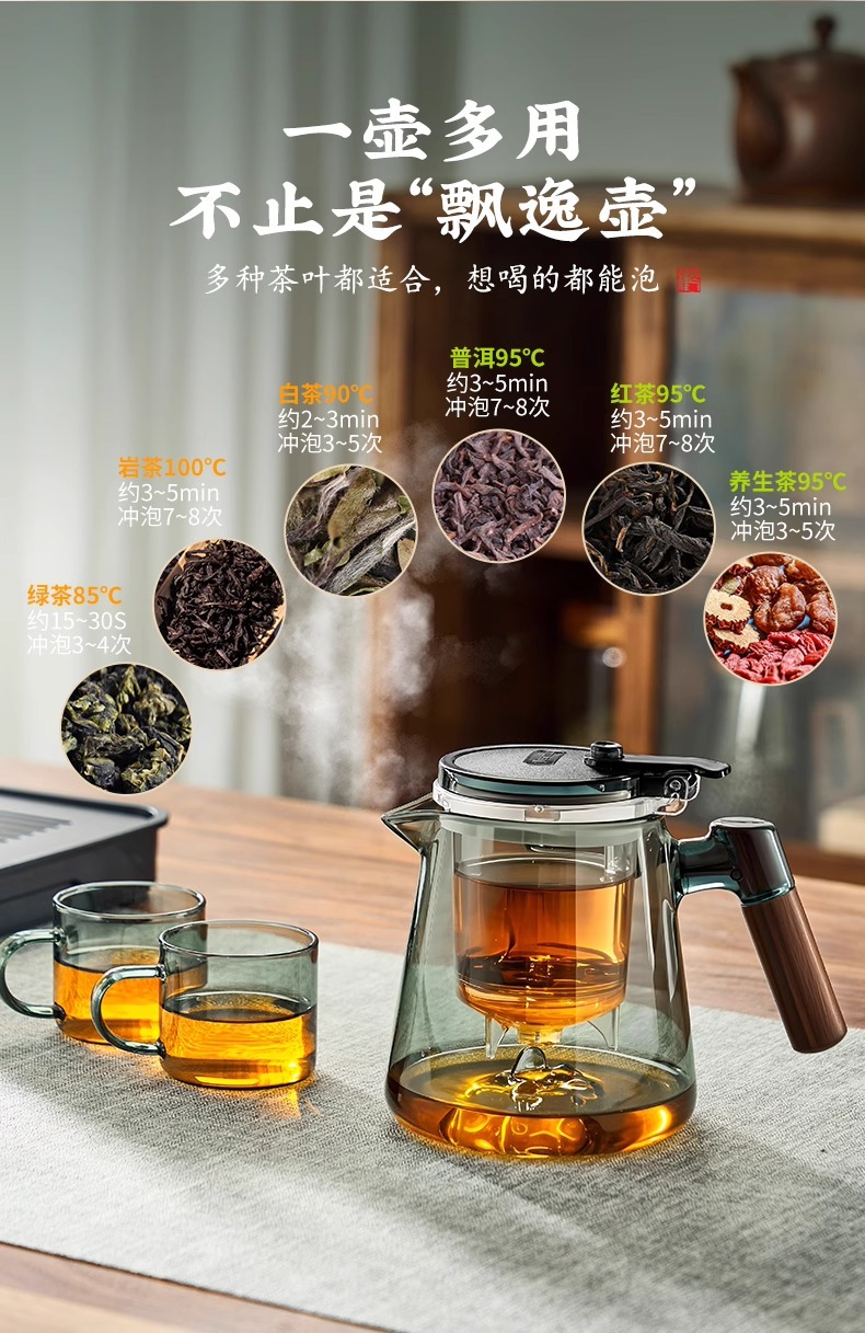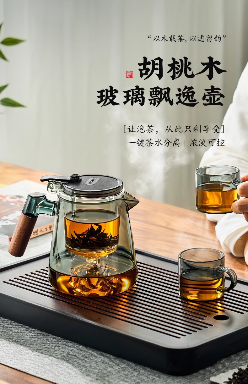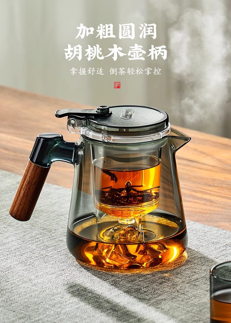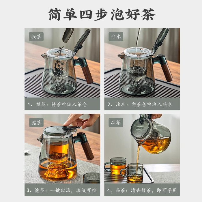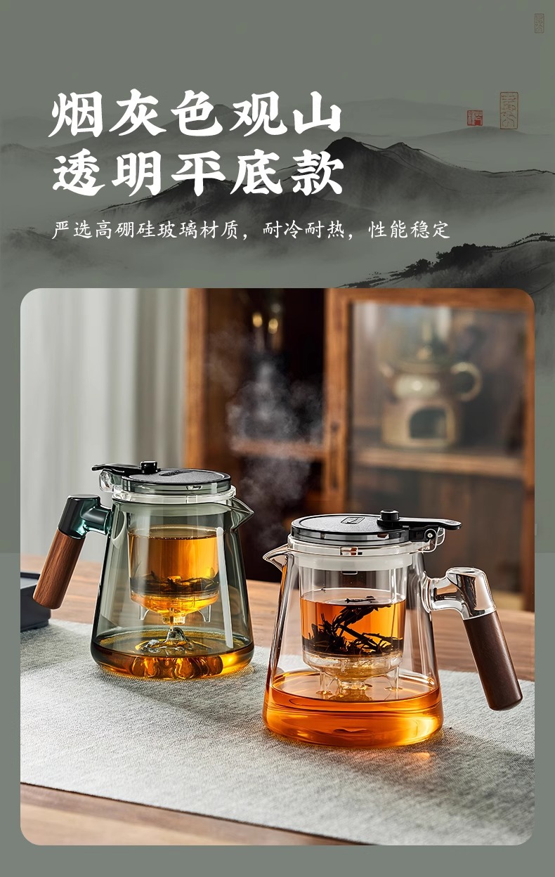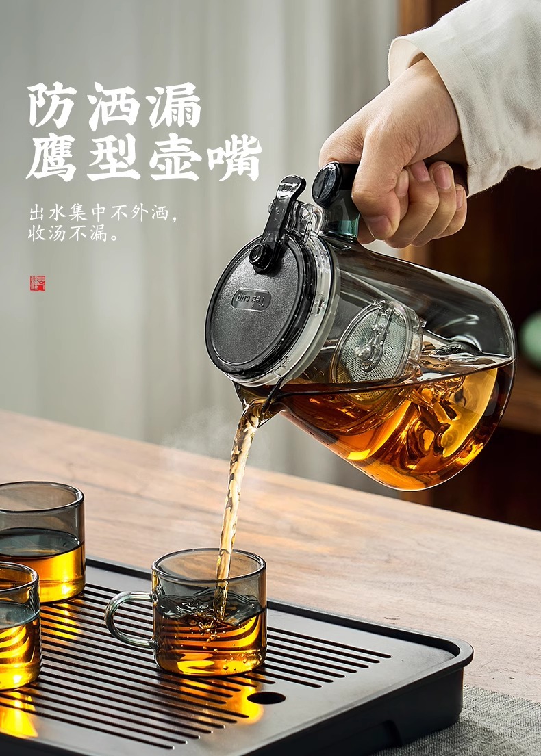 菸灰色玻璃茶壺茶水分離泡茶杯高硼矽玻璃飄逸杯辦公茶室家用茶壺