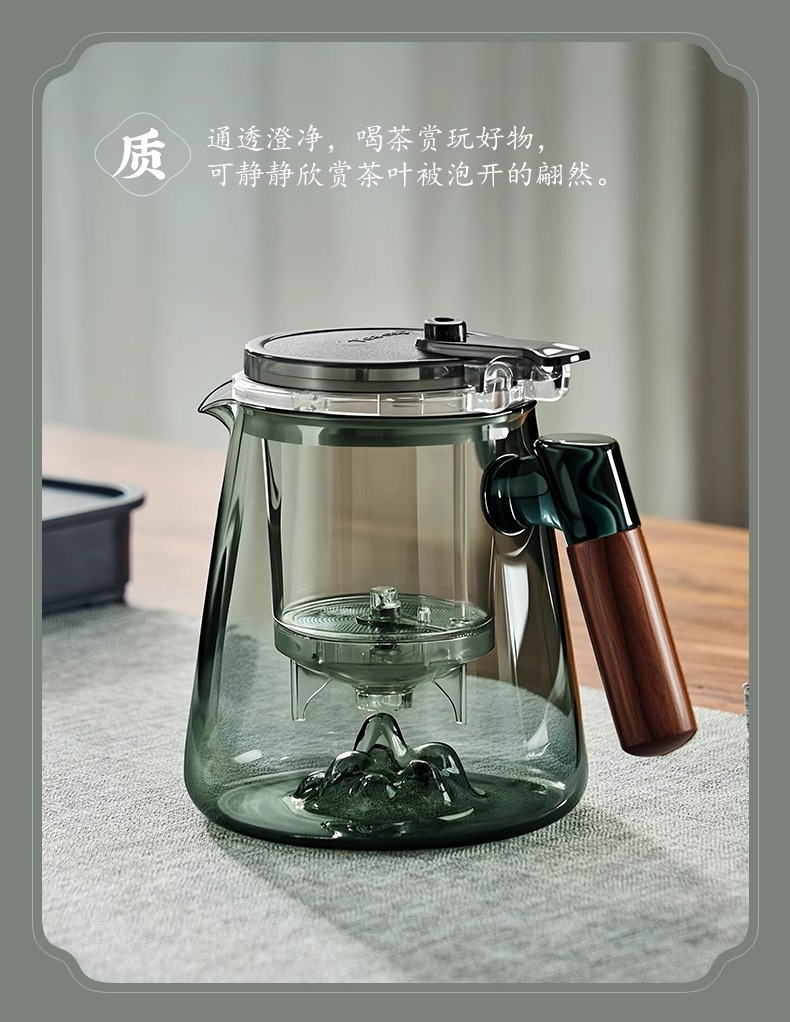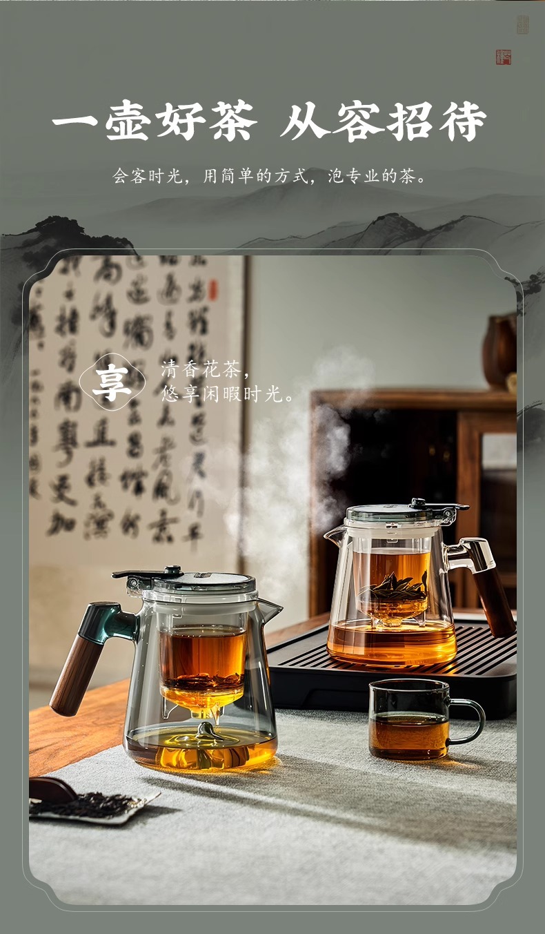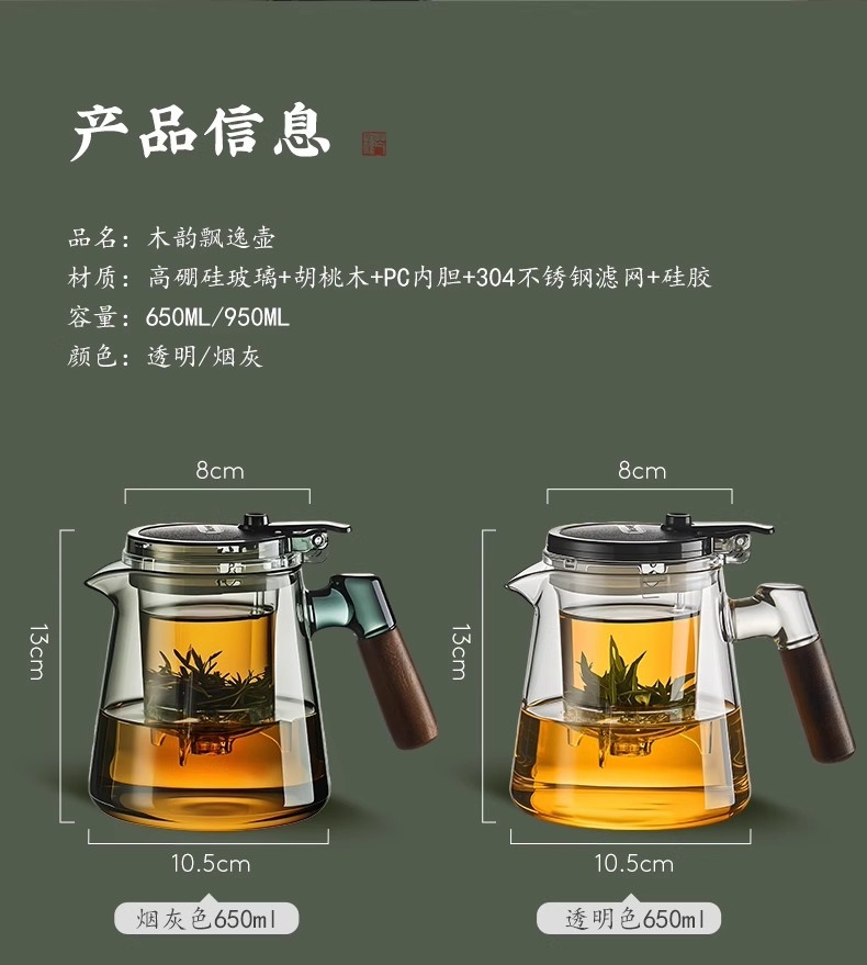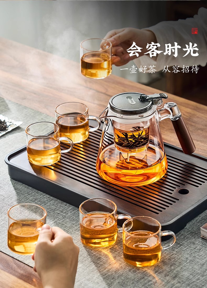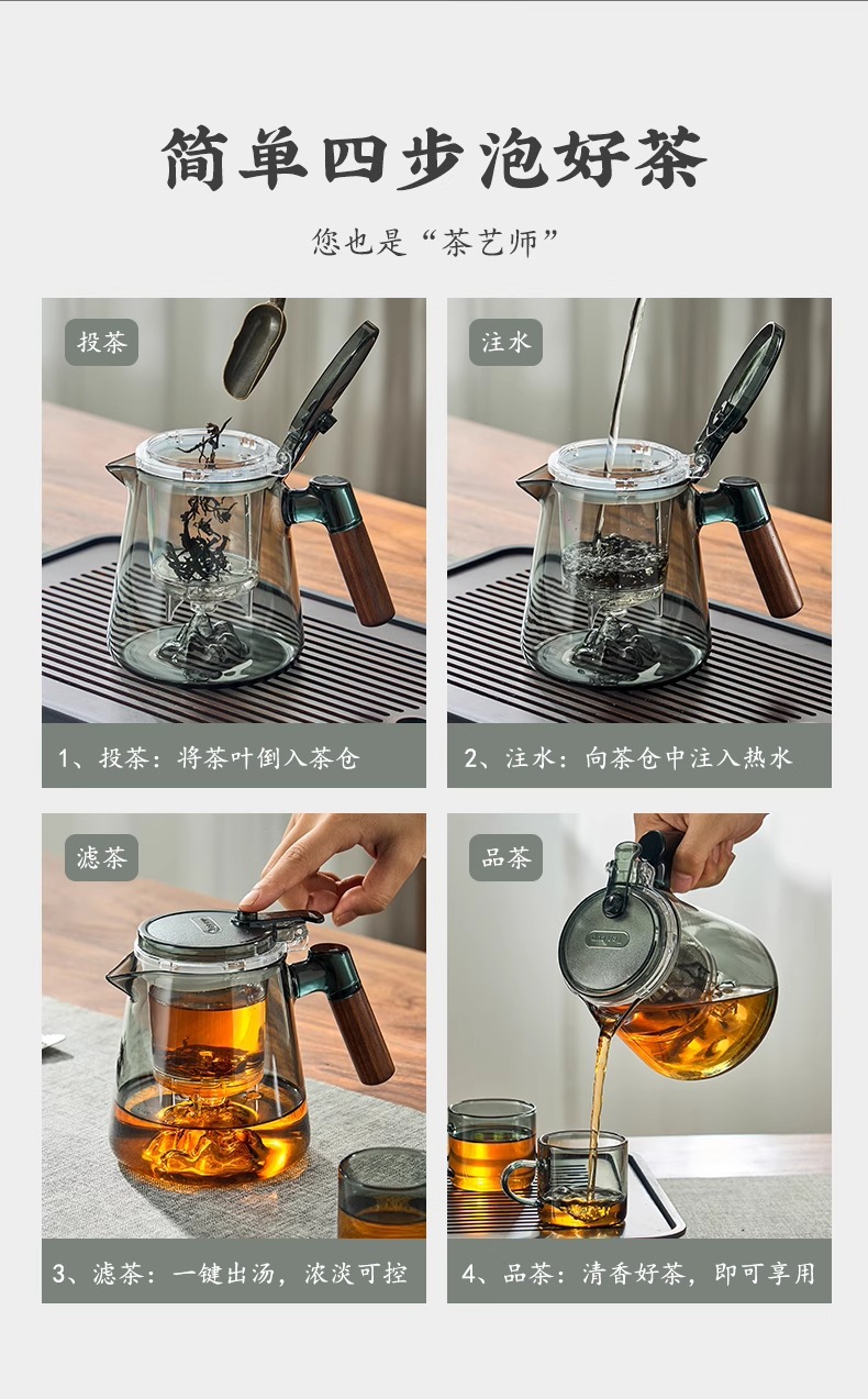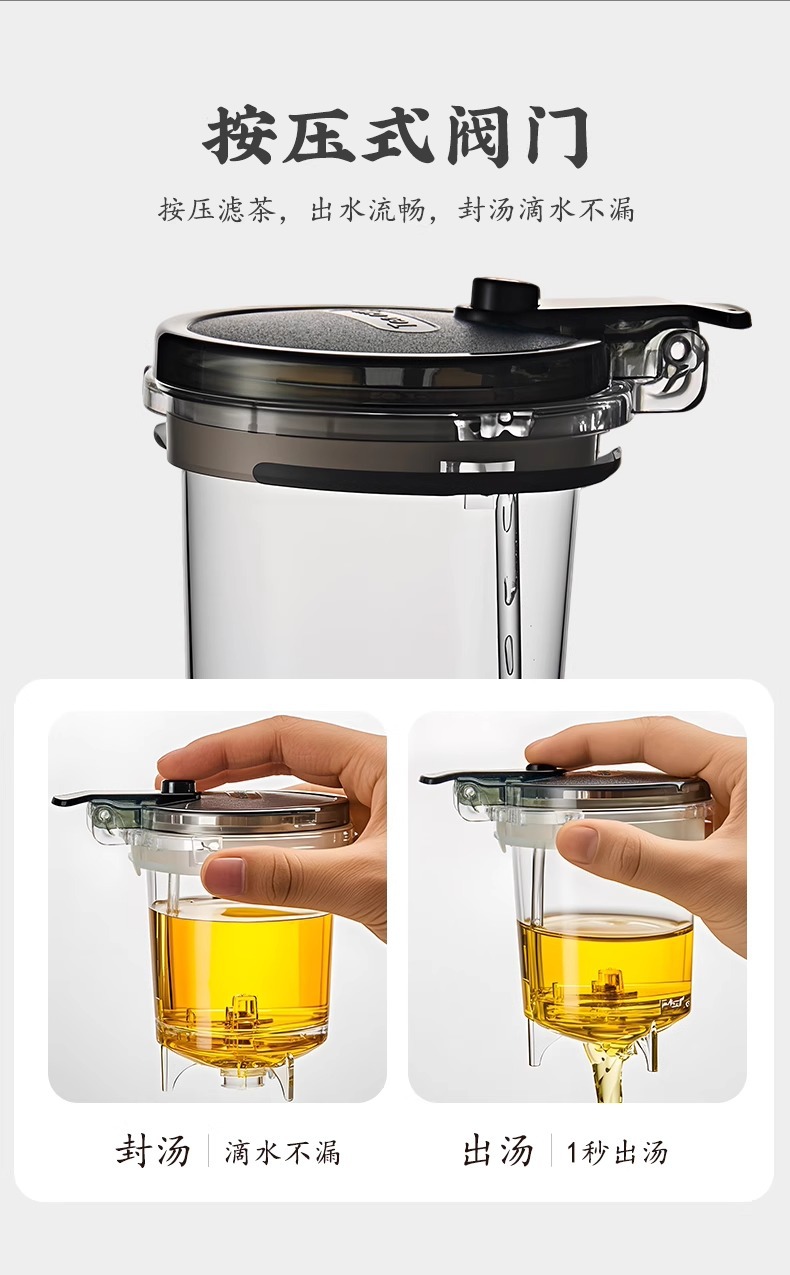菸灰色玻璃茶壺茶水分離泡茶杯高硼矽玻璃飄逸杯辦公茶室家用茶壺