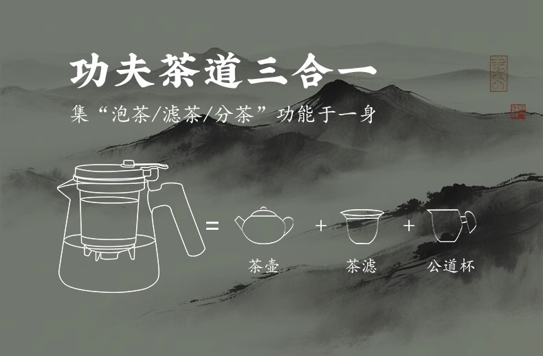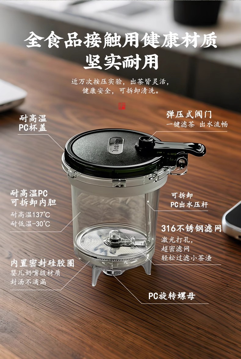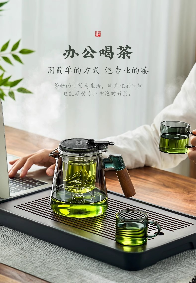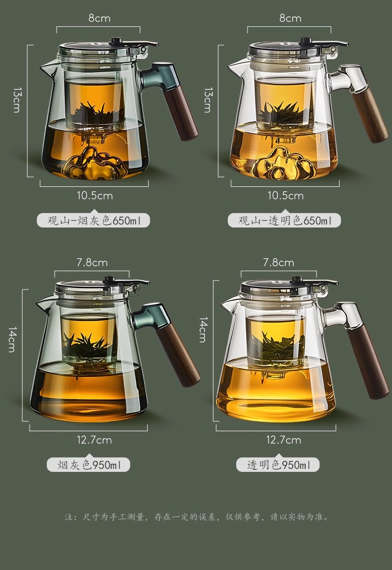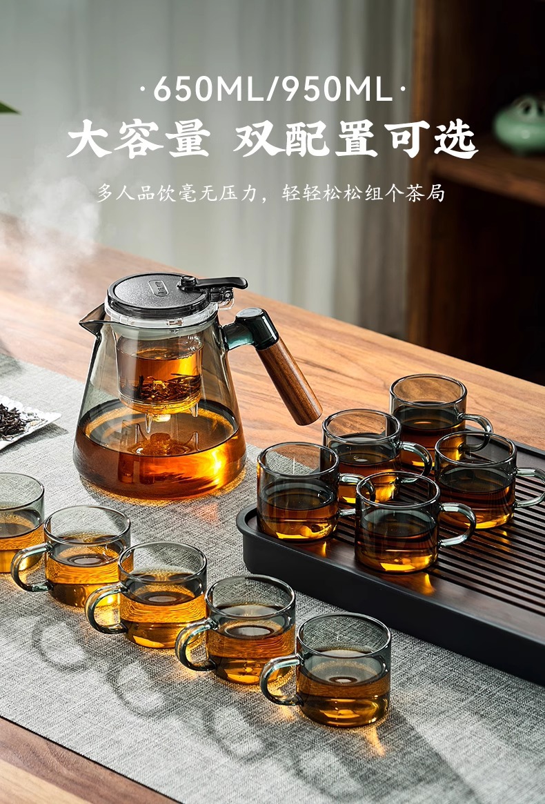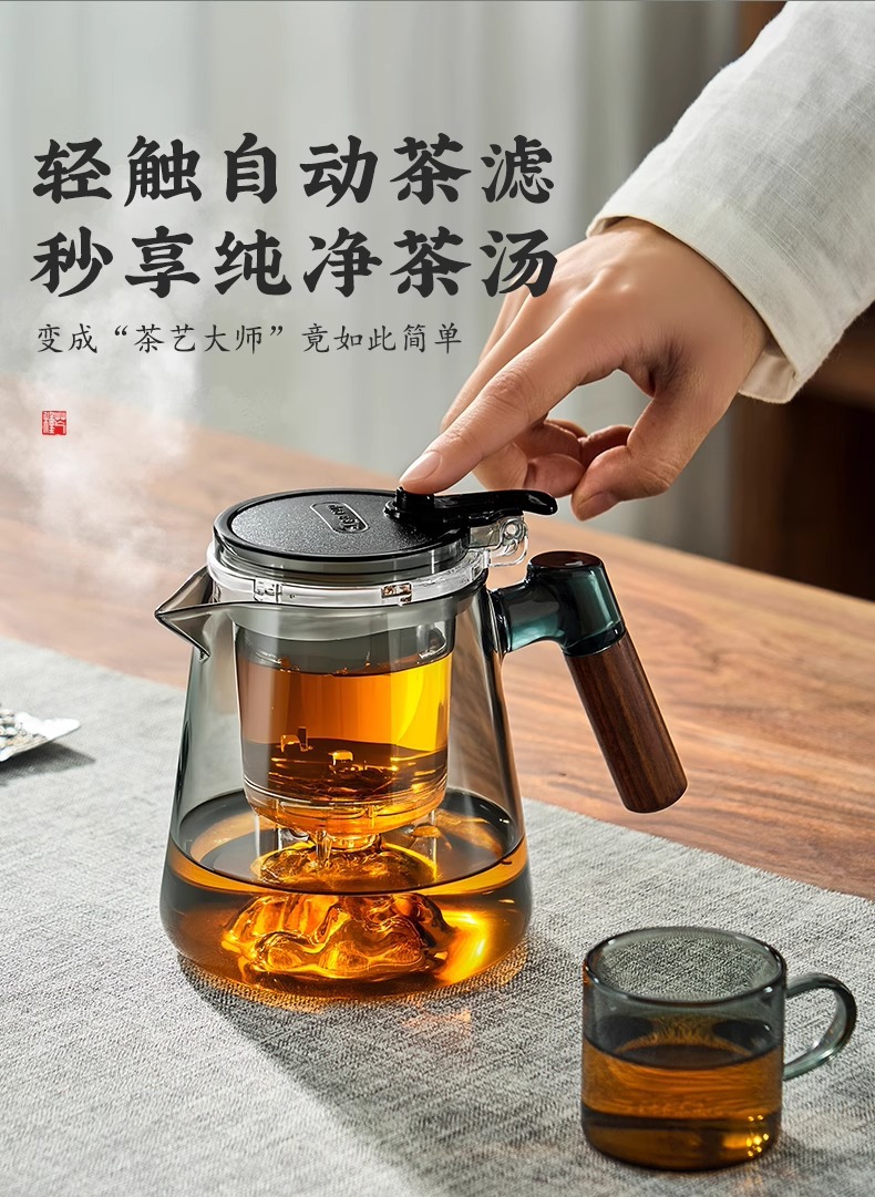 菸灰色玻璃茶壺茶水分離泡茶杯高硼矽玻璃飄逸杯辦公茶室家用茶壺