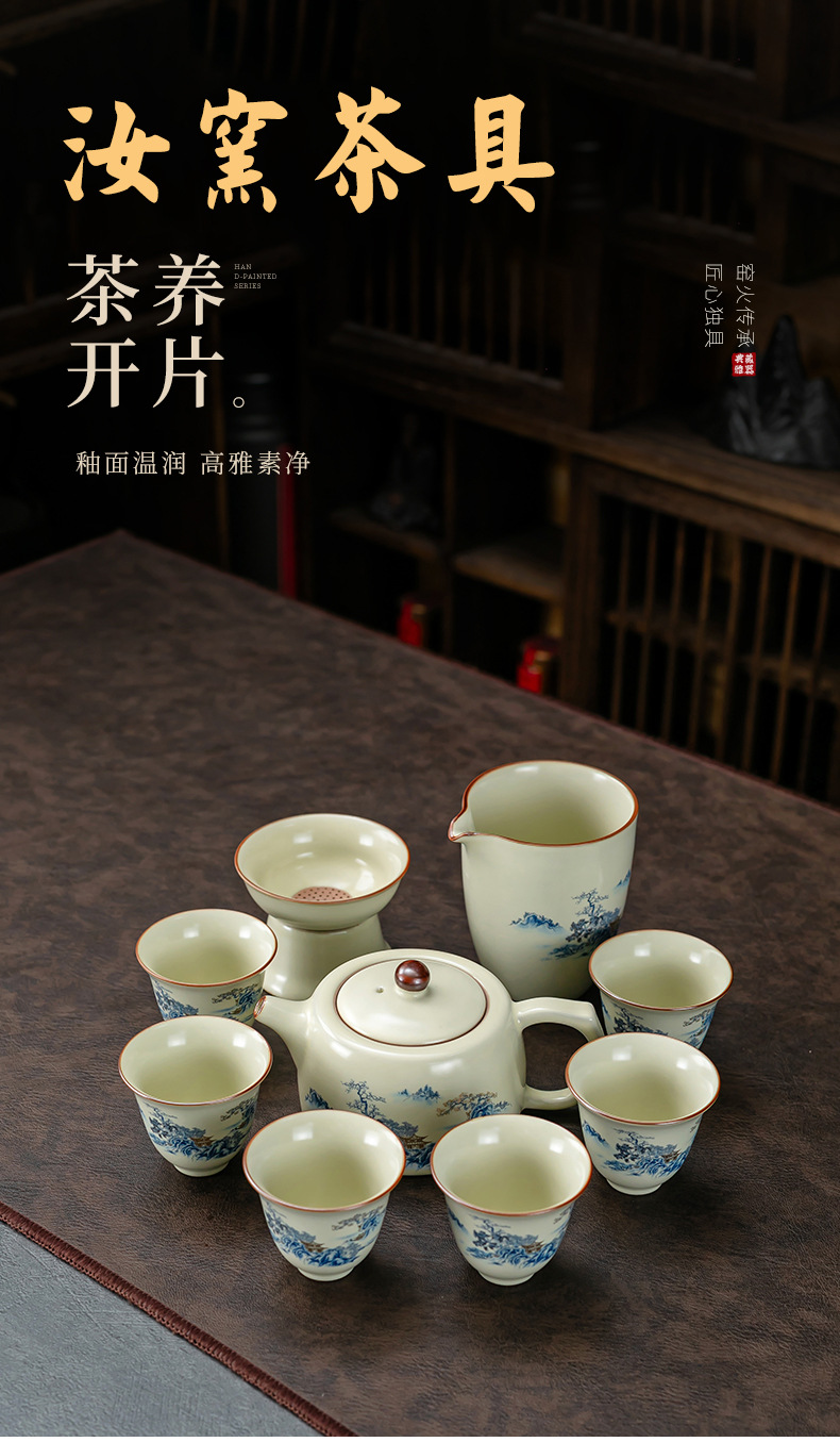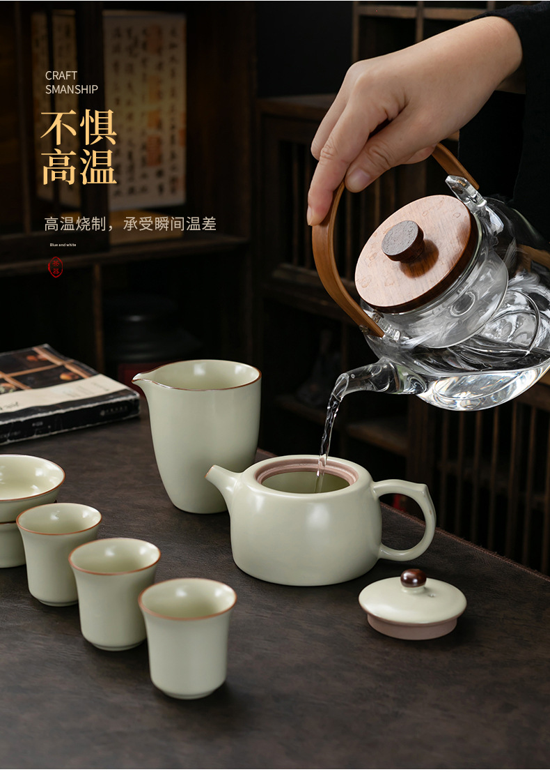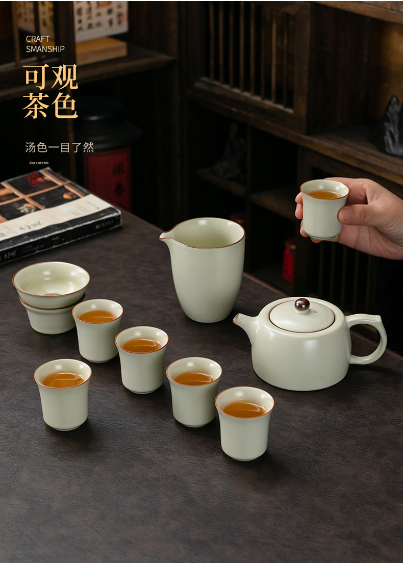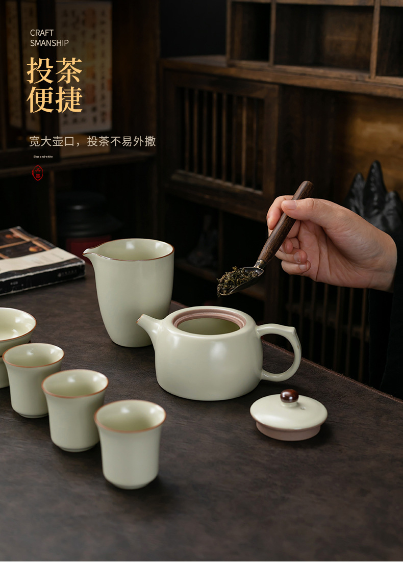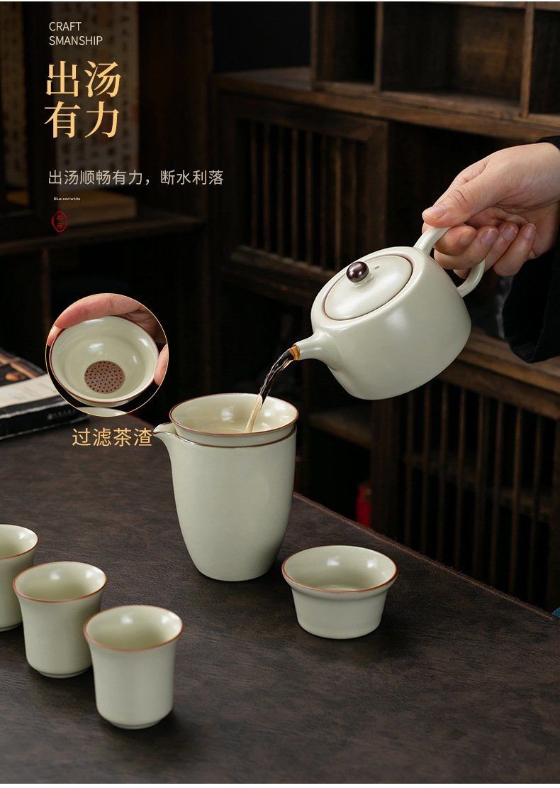 整套汝窰功夫茶具西施壺套裝簡約陶瓷泡茶杯辦公家用套裝