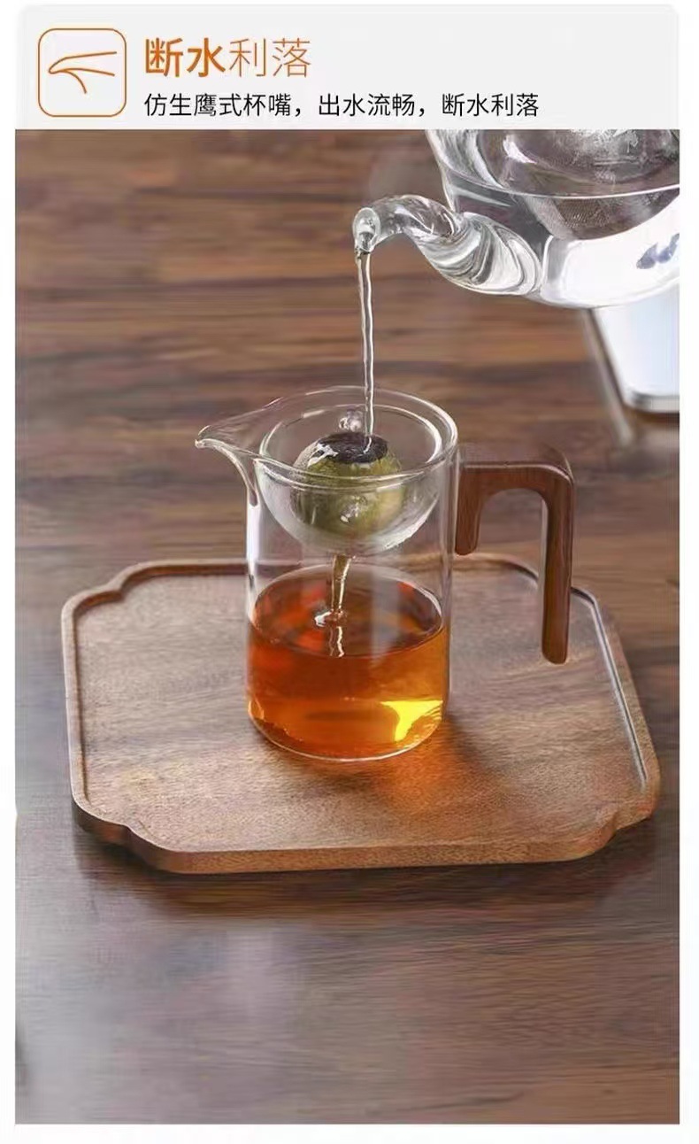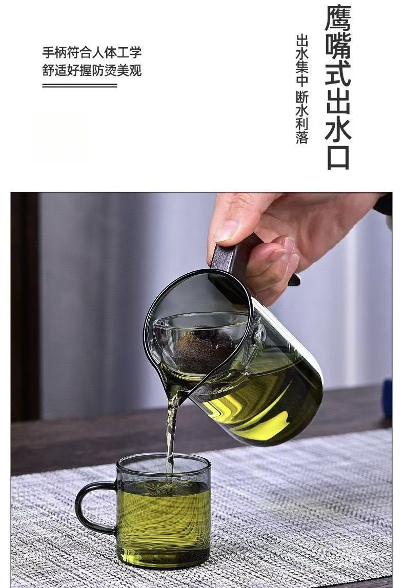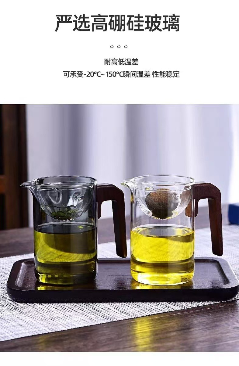 小青柑專用泡茶杯高硼矽玻璃逍遙杯木把公道杯茶漏分茶器耐高溫
