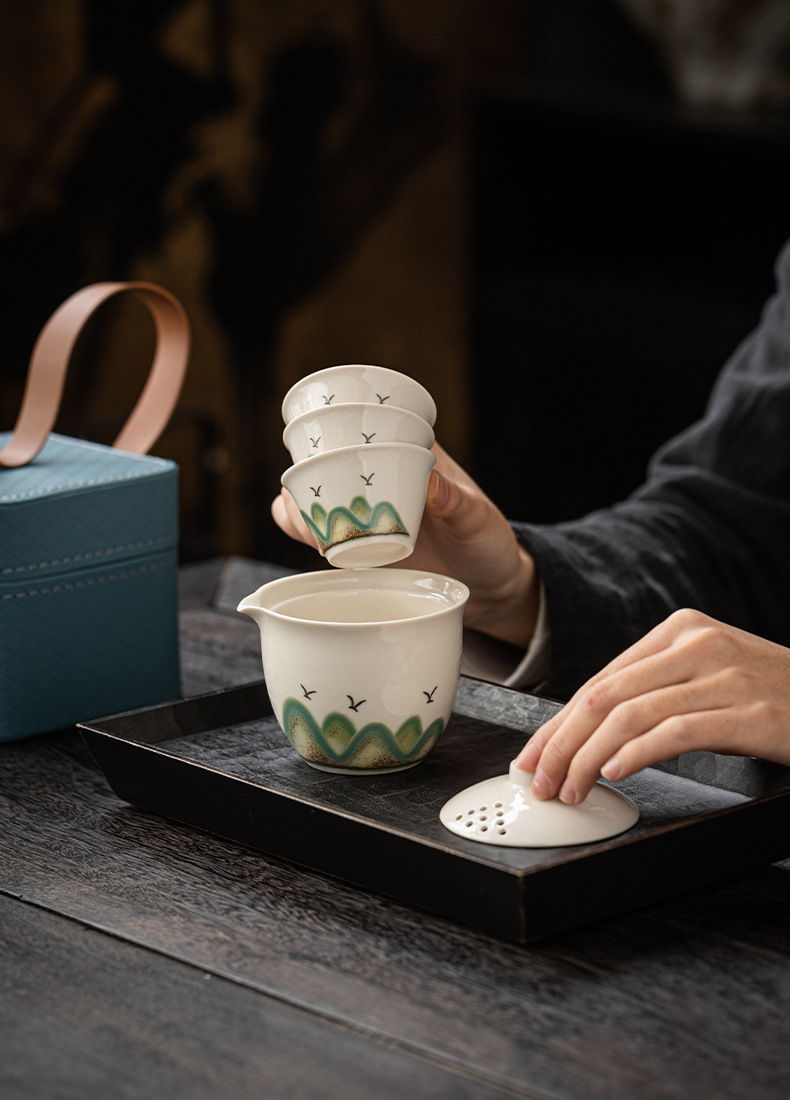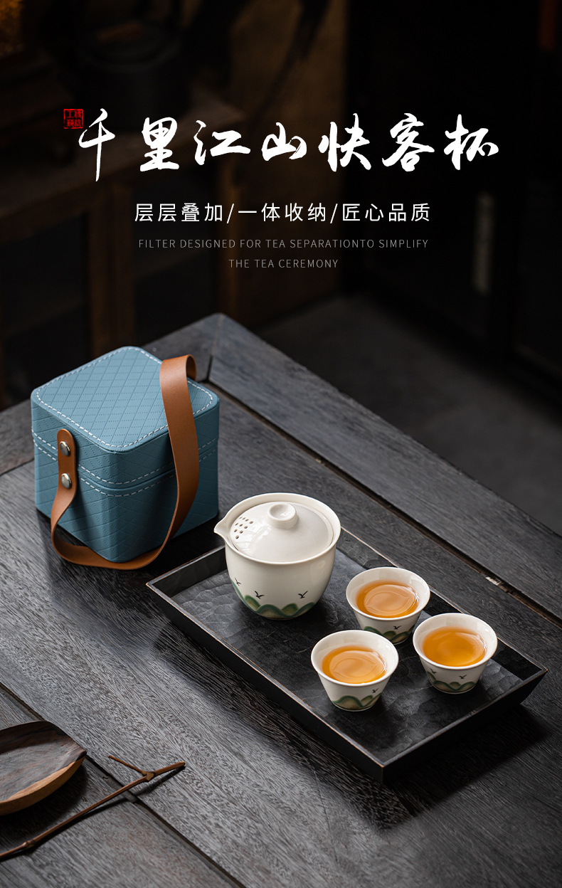 陶瓷快客杯旅行茶具套裝可攜式車用戶外功夫茶具套組禮品