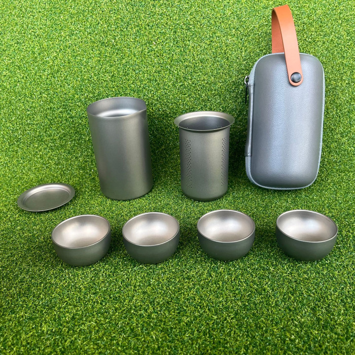 純鈦旅行茶具套裝戶外可攜式超輕露營雙層鷹嘴泡茶器功夫茶具茶杯子
