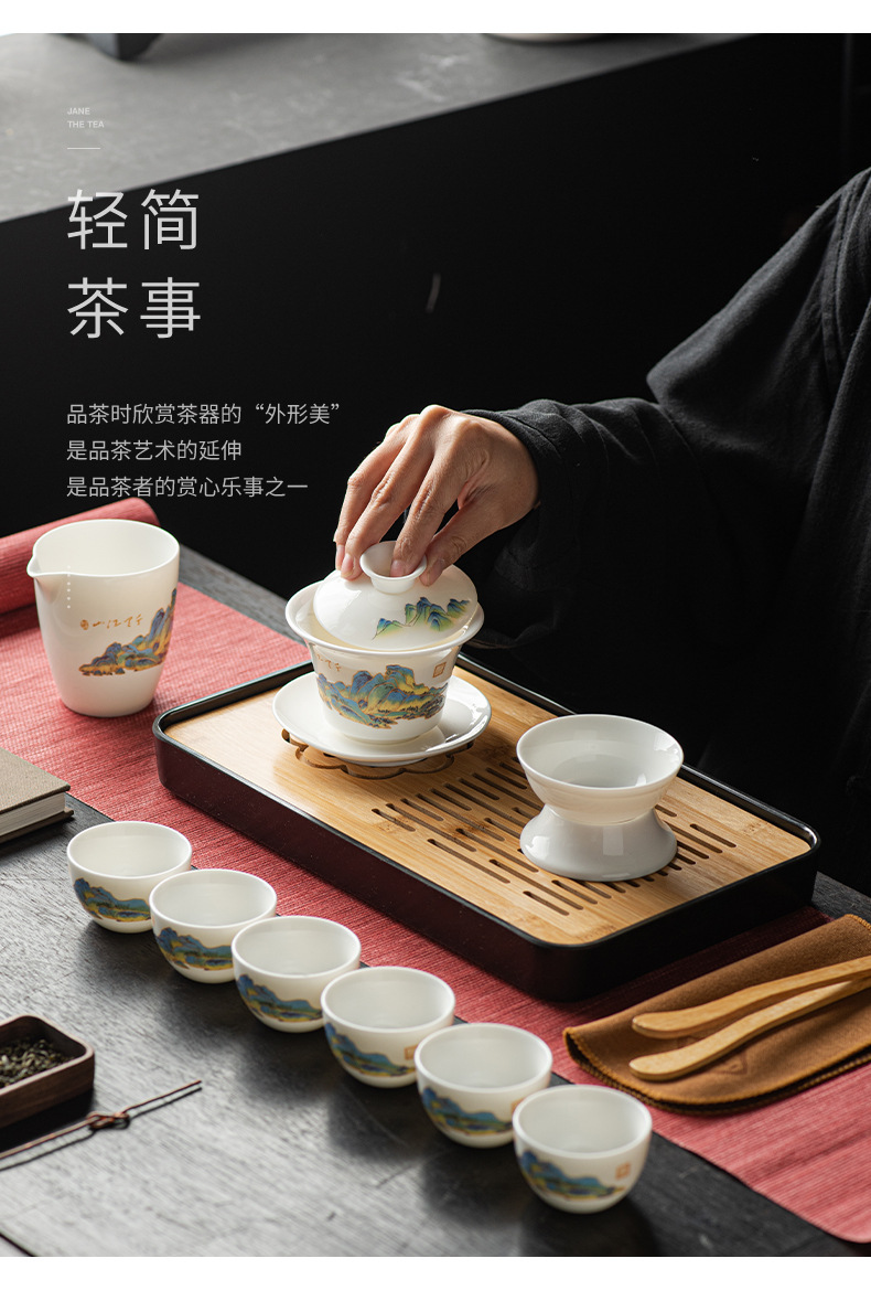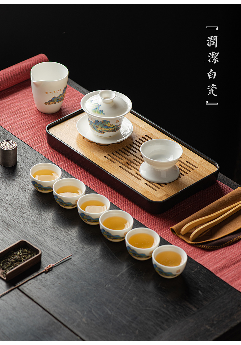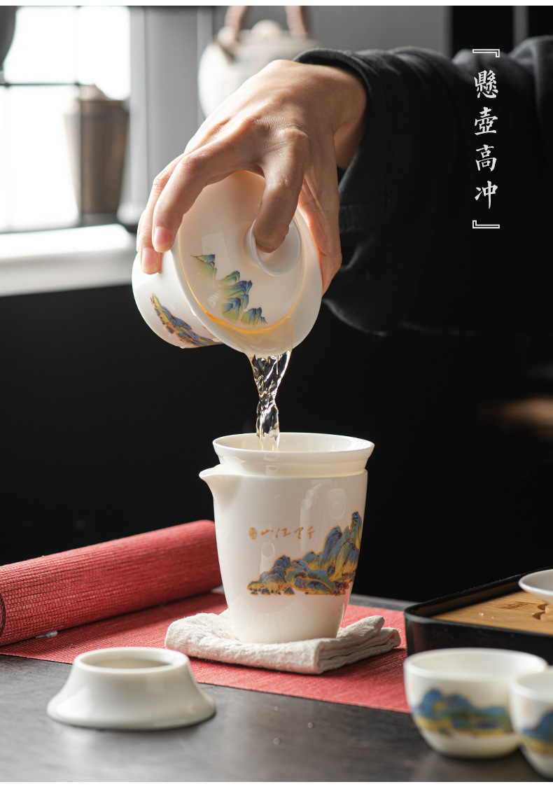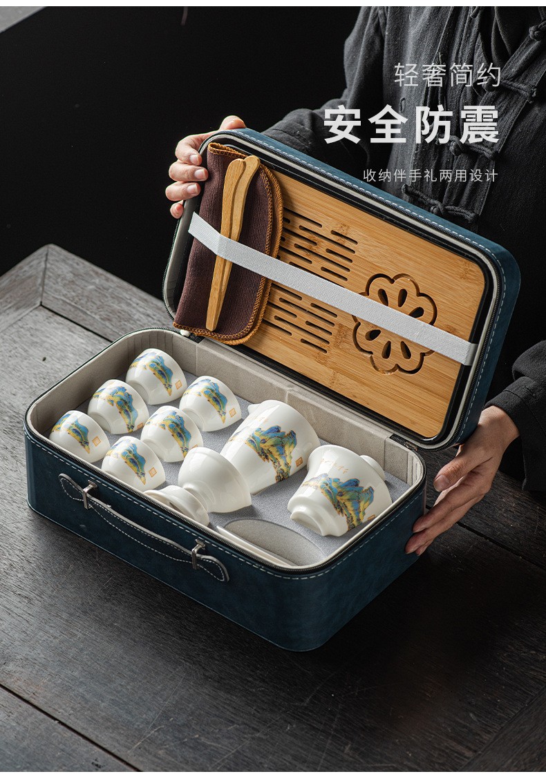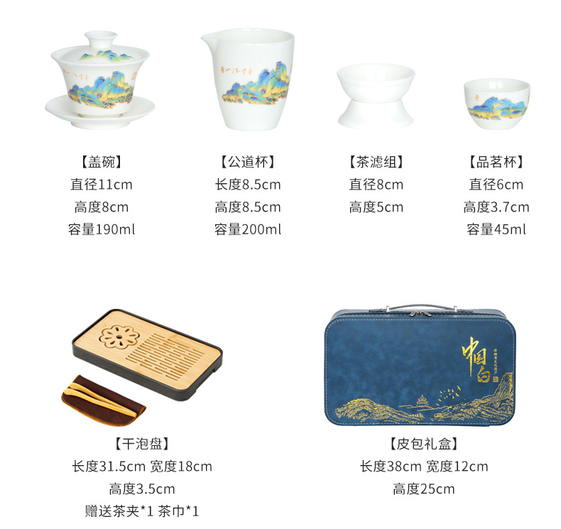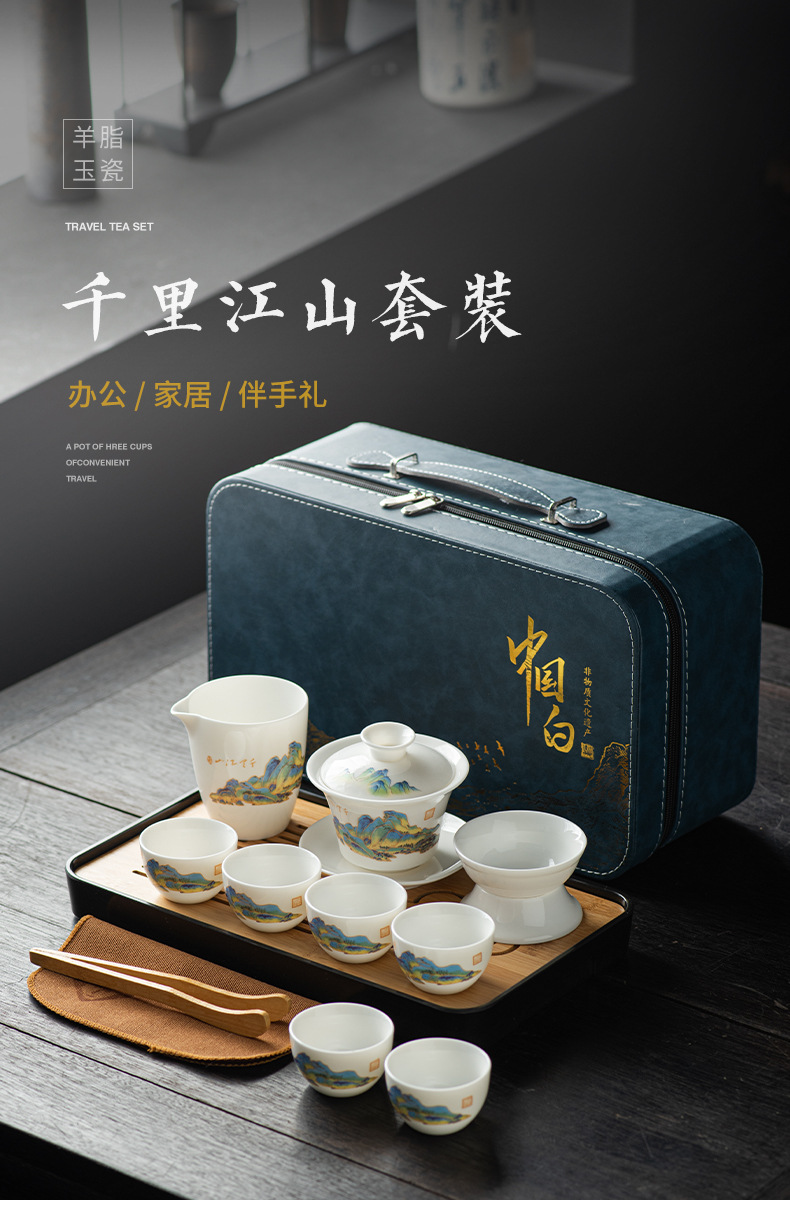 整套羊脂玉白瓷茶具套裝功夫茶具蓋碗茶杯可攜式旅行茶具商務禮品