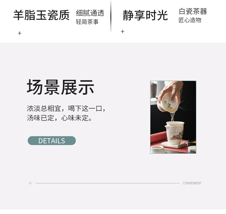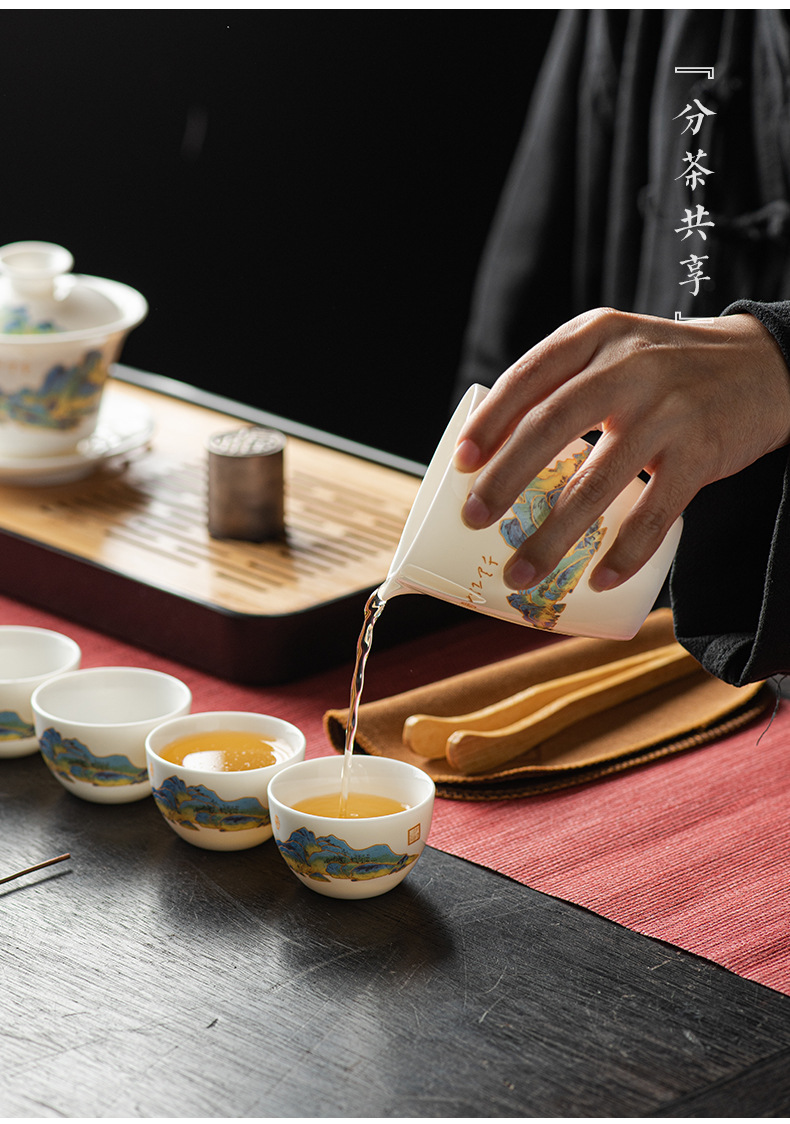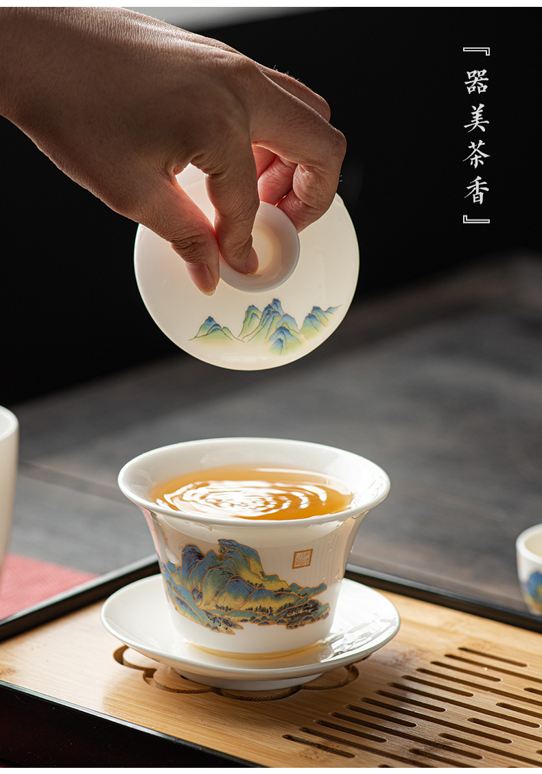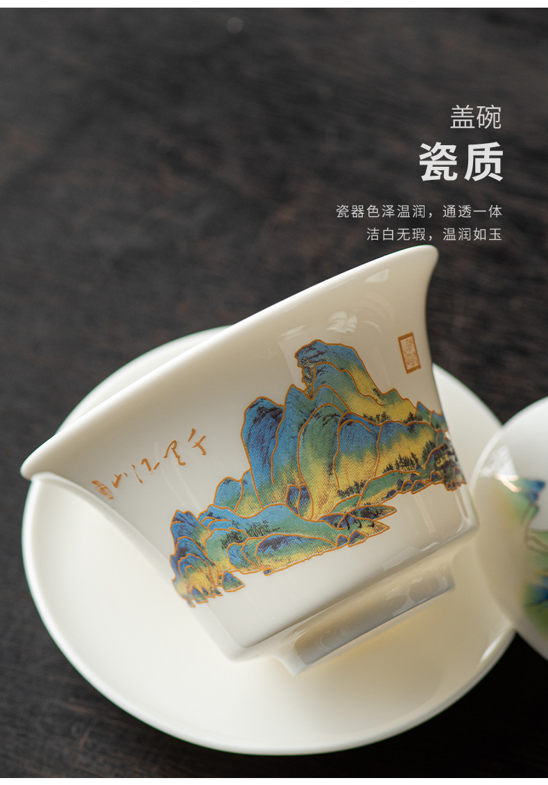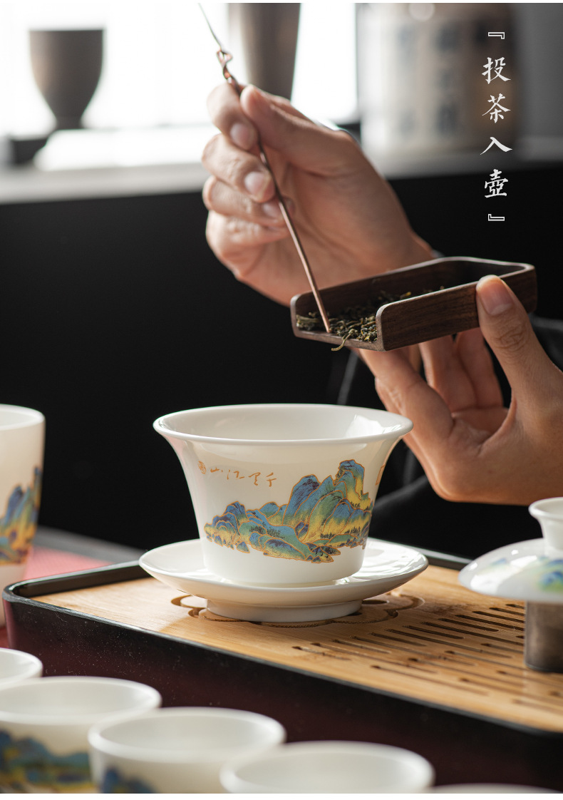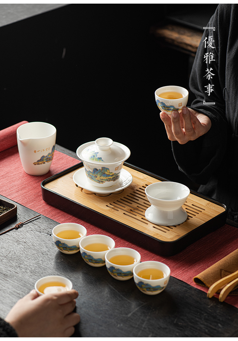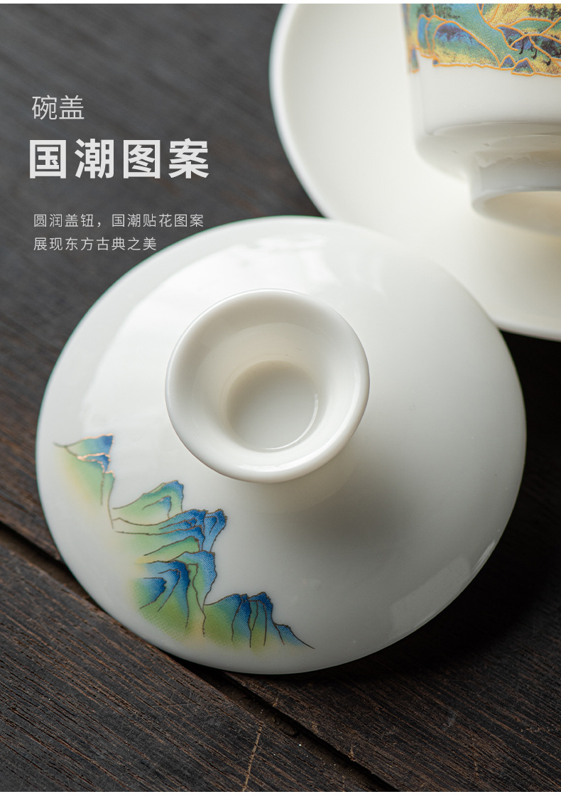 整套羊脂玉白瓷茶具套裝功夫茶具蓋碗茶杯可攜式旅行茶具商務禮品
