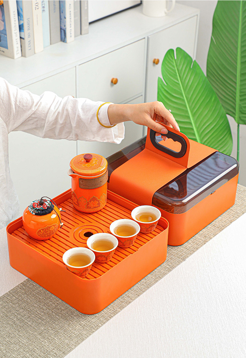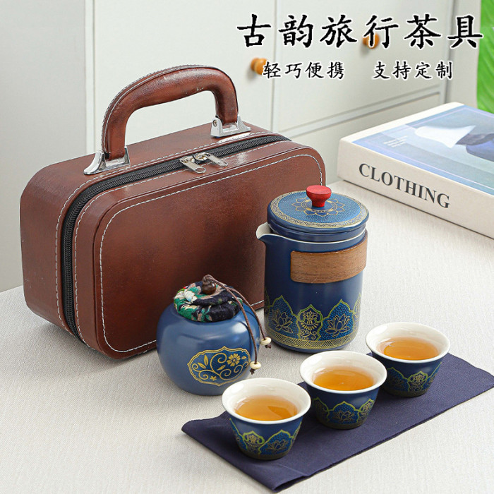 現代簡約一壺三杯戶外泡茶可攜式旅行茶具套裝收納商務禮品快客杯