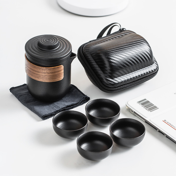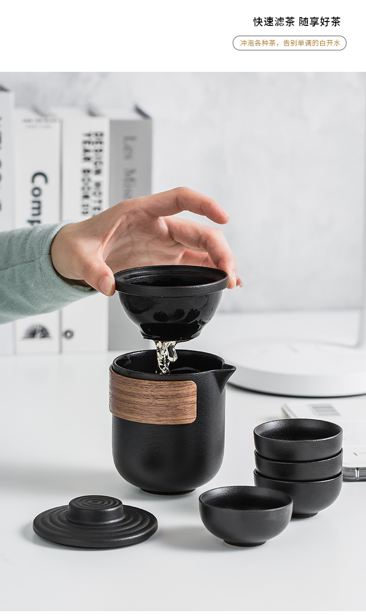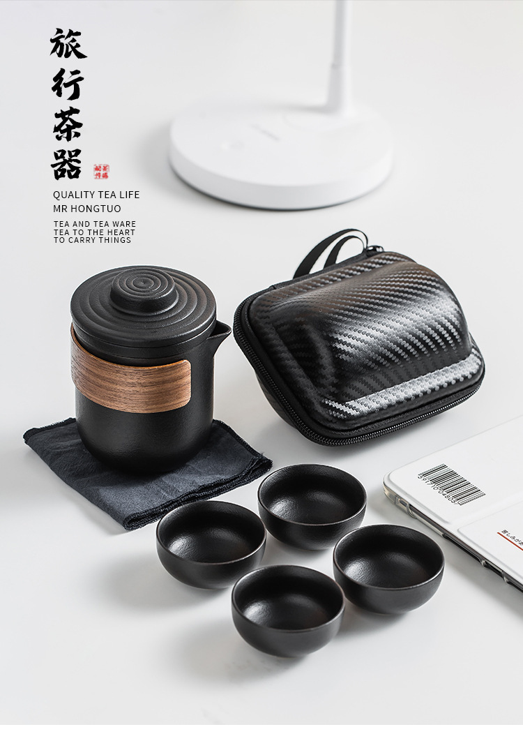 可攜式旅行茶具套裝一壺四杯戶外露營車用家用簡約陶瓷快客杯