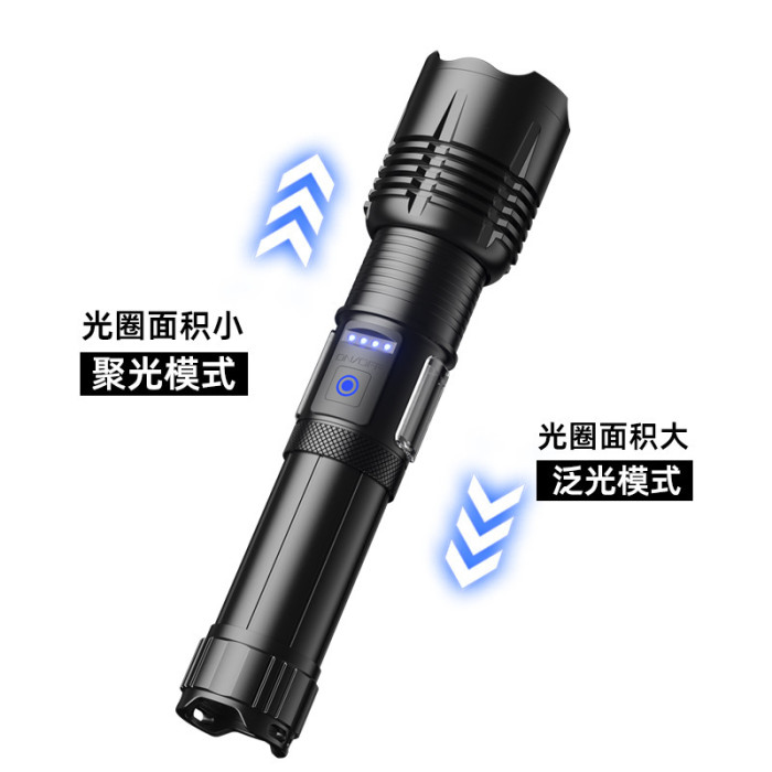 大功率白極光手電筒戶外照明防水強光多功能應急工作燈可充電