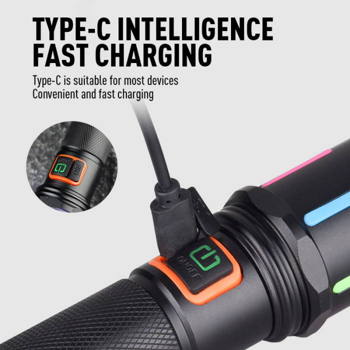 TEMU TIKTOK 強光手電筒巡邏露營戶外照明白雷射COB鋁合金