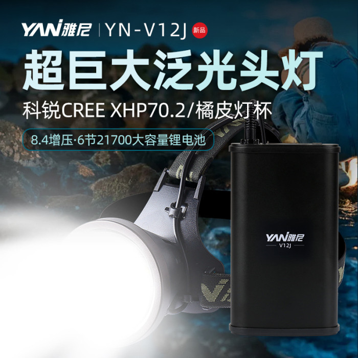 雅尼V12J分體式強光頭燈超亮2025新款戶外超長續航橘皮燈杯大泛光
