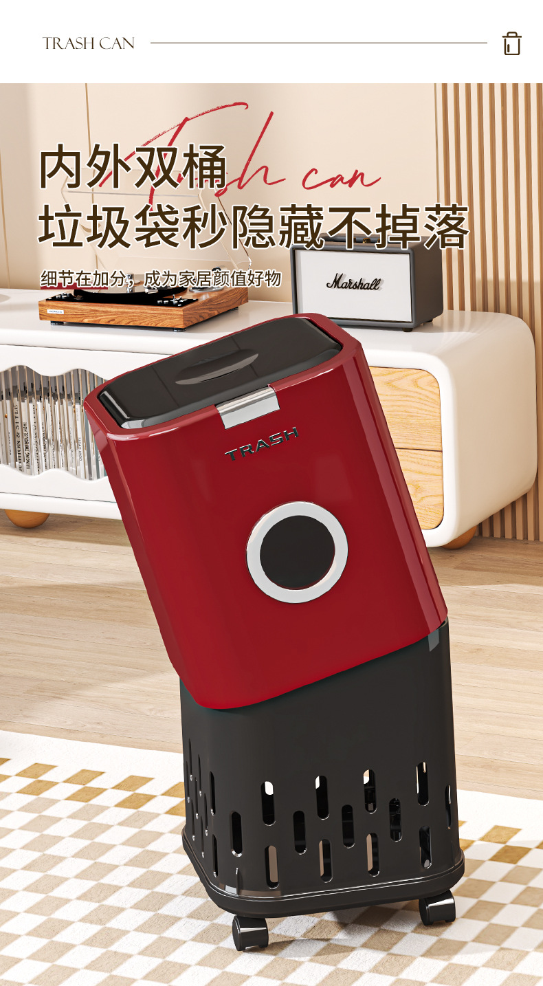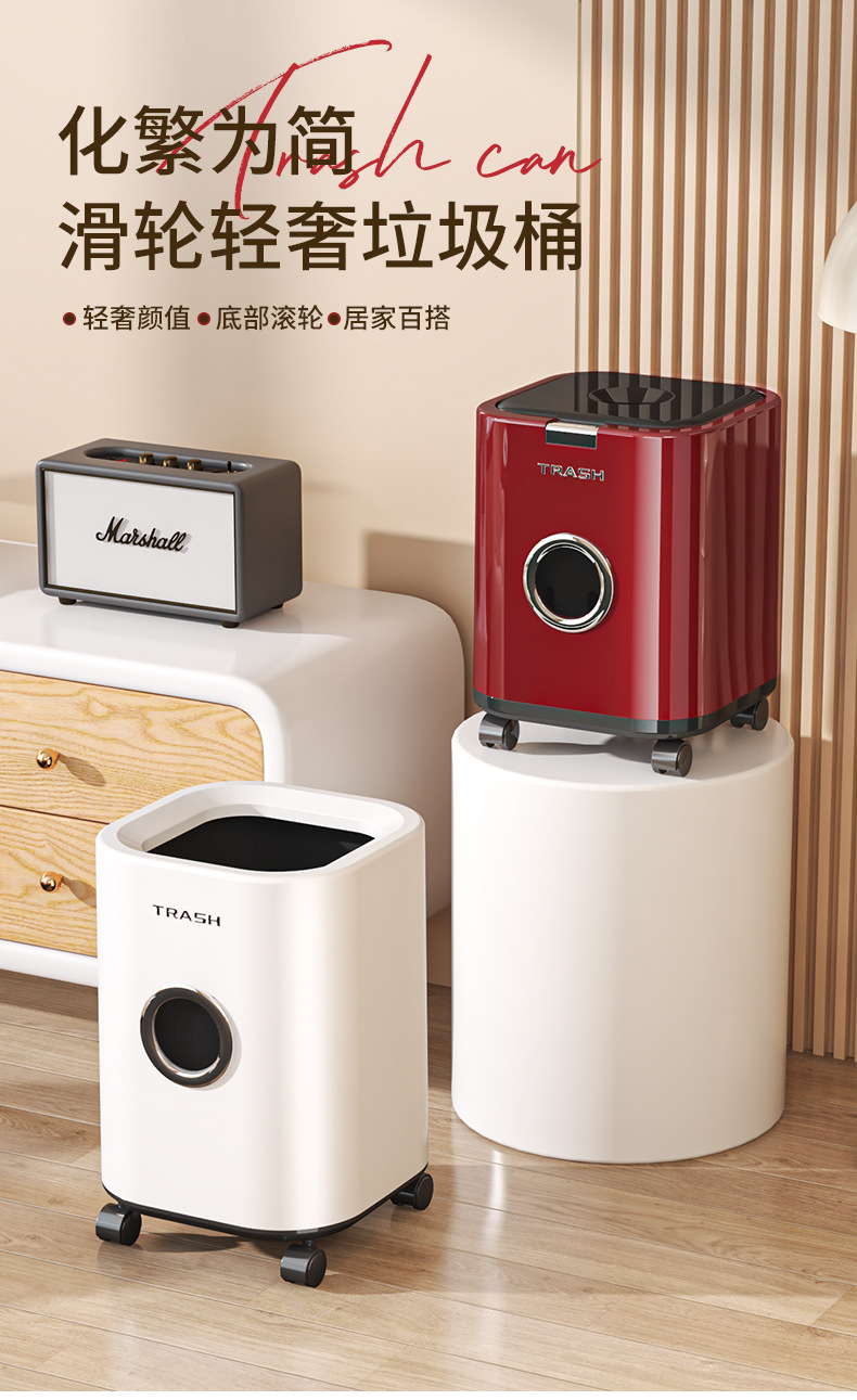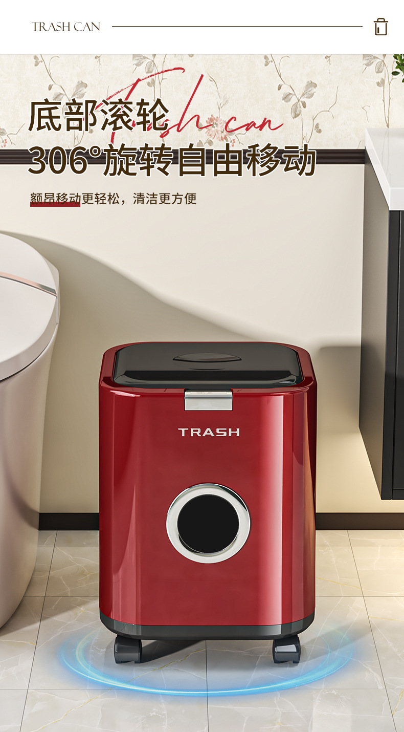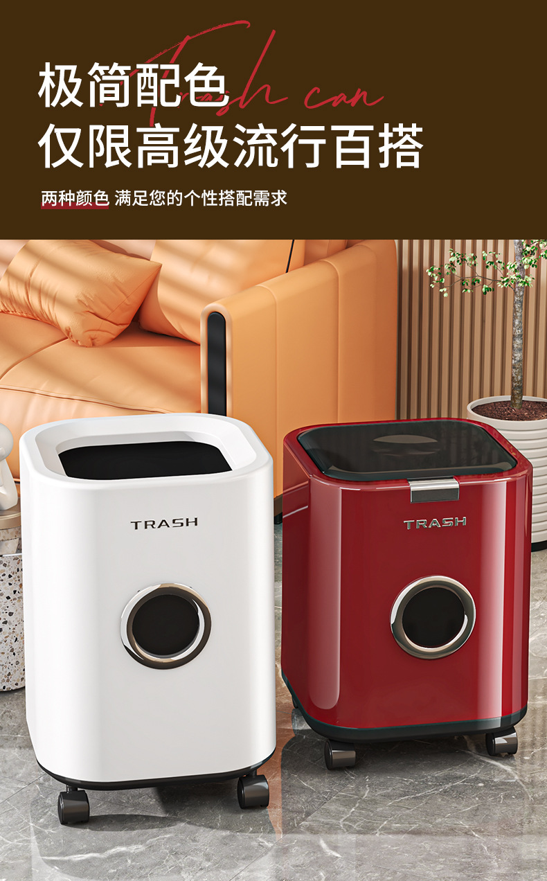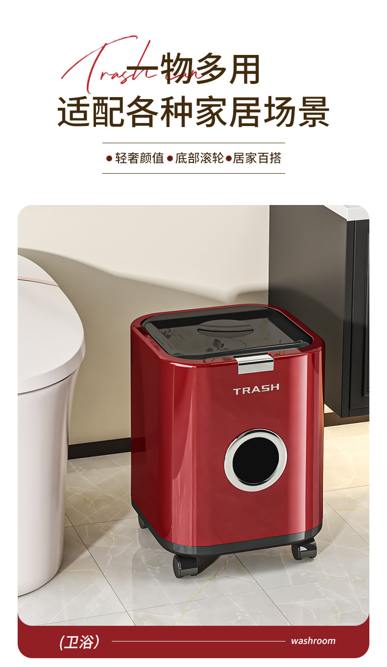 垃圾桶帶蓋家用高級感廚房客廳衛生間大號大容量高顔值帶輪可移動