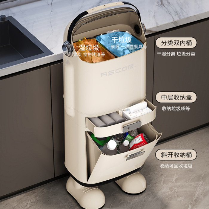廚房分類垃圾桶帶蓋家用高級感廚餘乾溼分離大號大容量高顔值帶輪