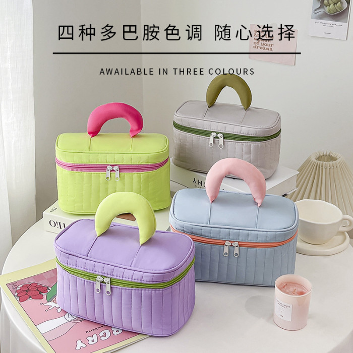 撞色化妝包大容量高級感洗漱包出差旅行可攜式收納包高顔值2024新款