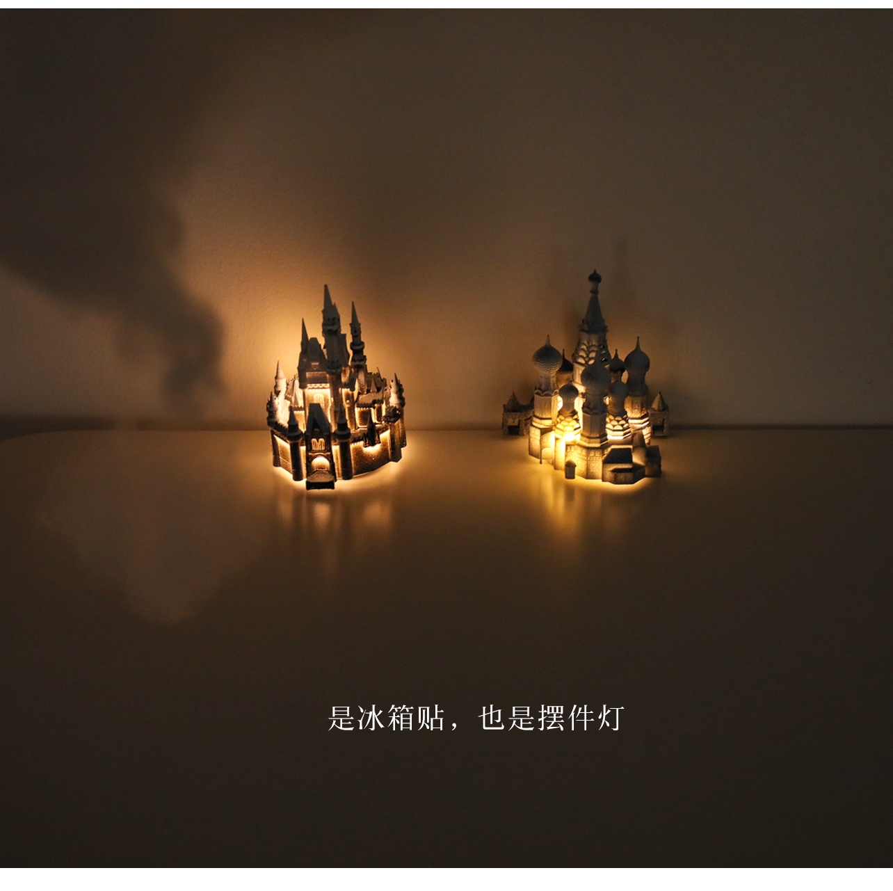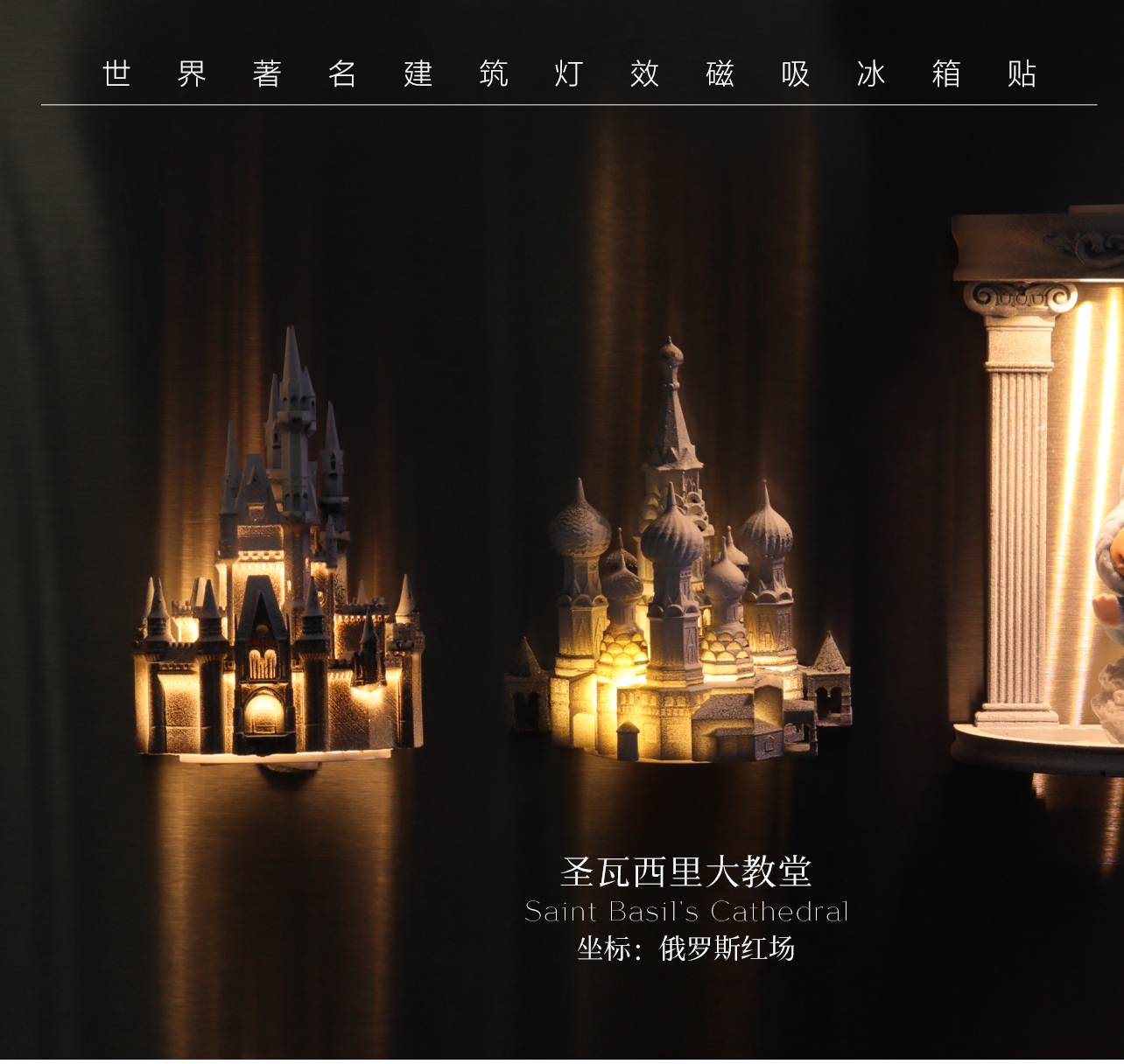 發光城堡冰箱貼磁吸燈光擺件俄羅斯聖瓦西裡大教堂開門亮燈伴手禮