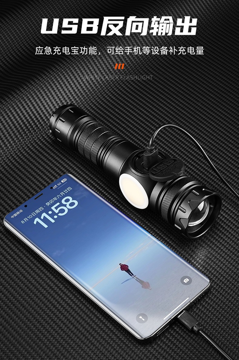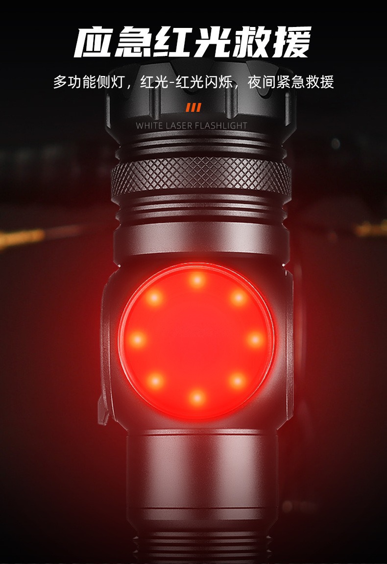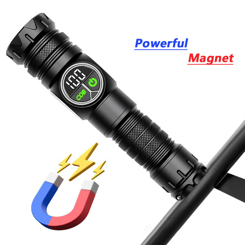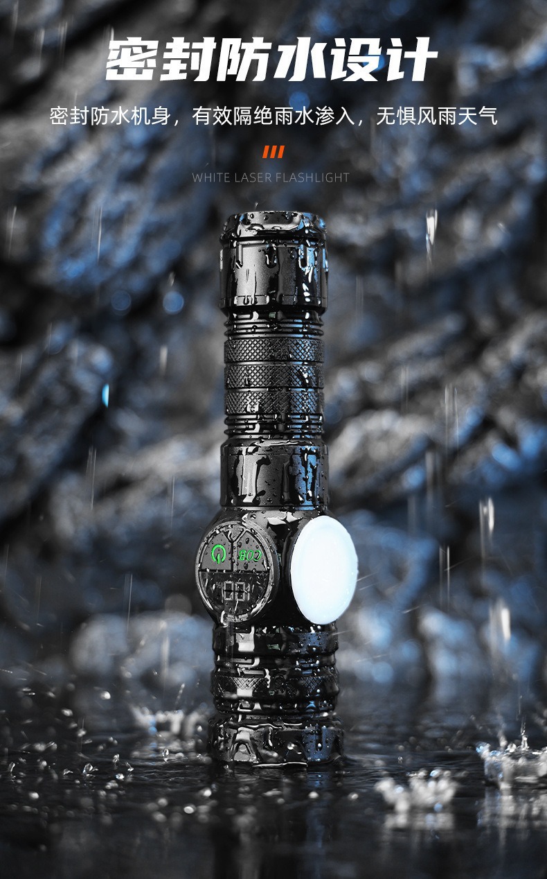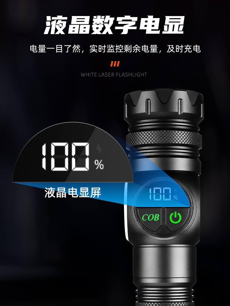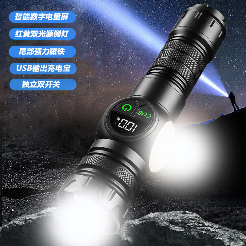 新款雙開關白雷射強光手電筒雙光源側燈數字屏顯強磁強光手電
