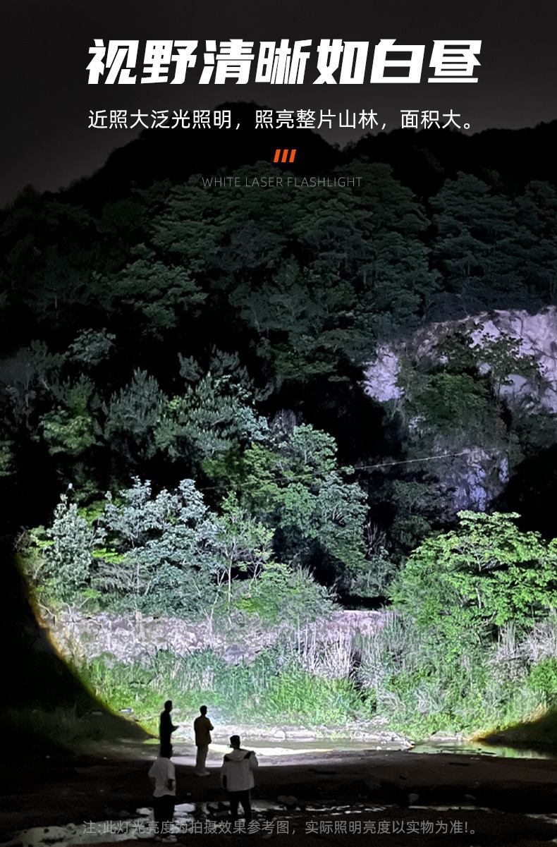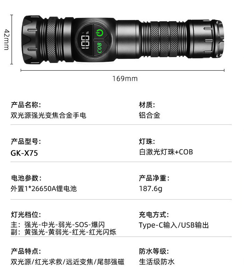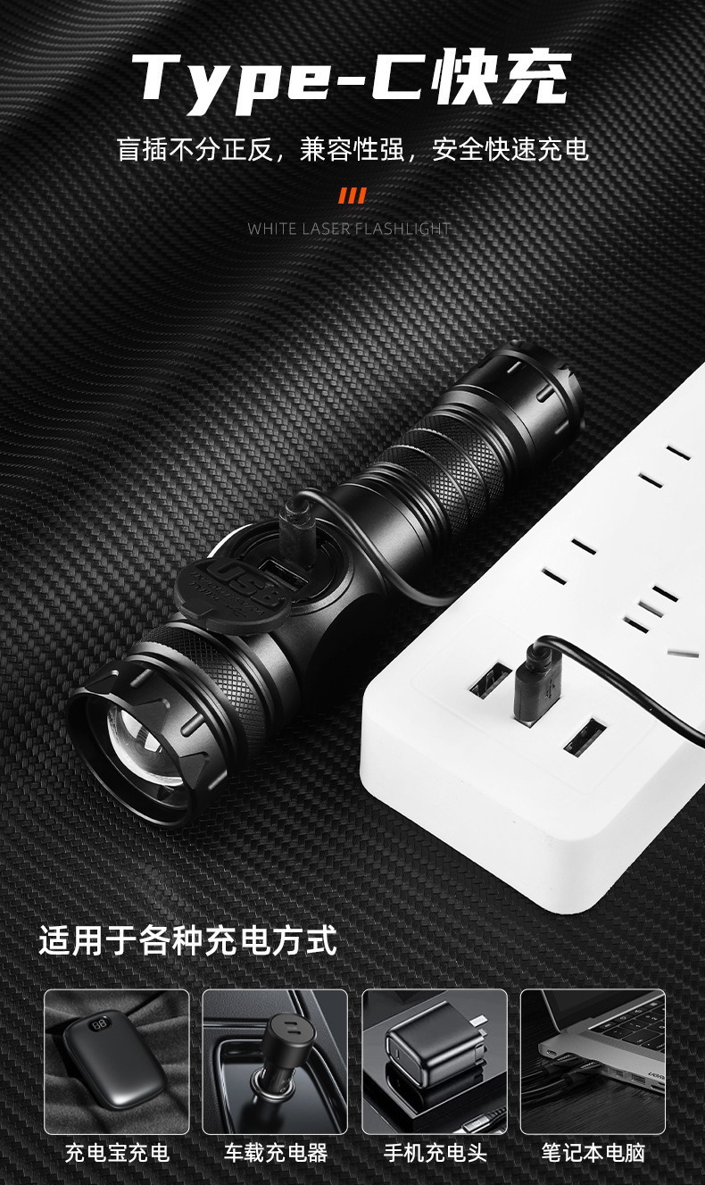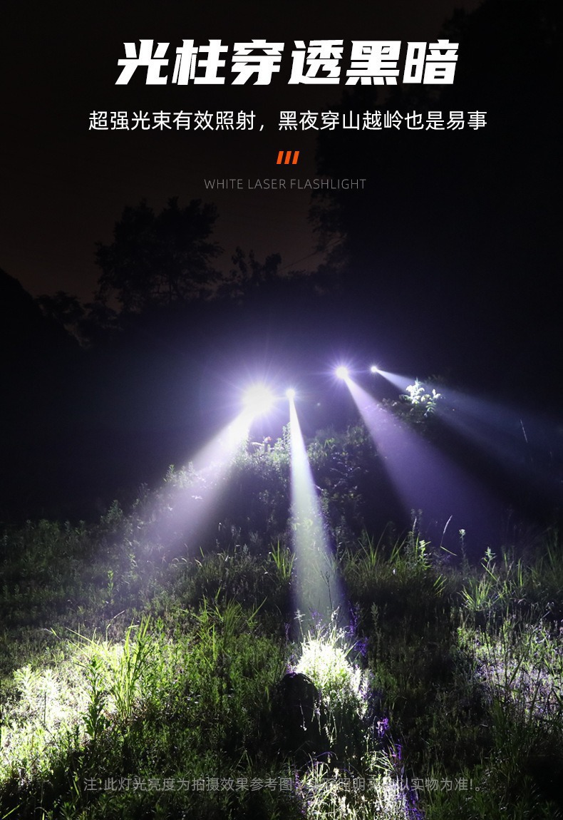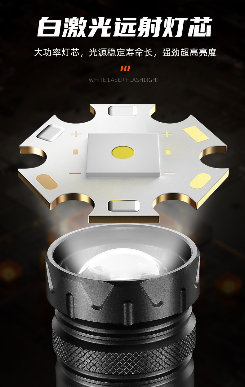 新款雙開關白雷射強光手電筒雙光源側燈數字屏顯強磁強光手電
