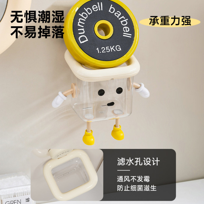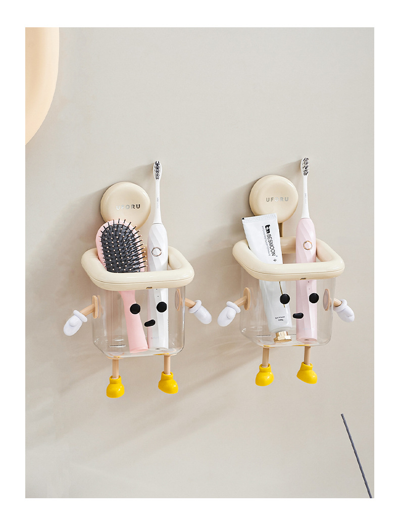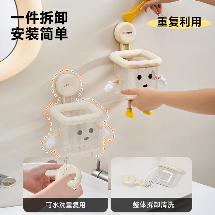 牙刷置物架高級感家用壁掛免打孔吸盤衛生間多功能塑膠透明收納盒