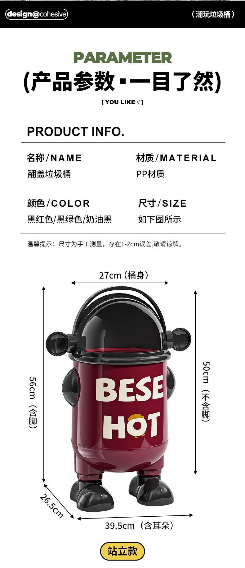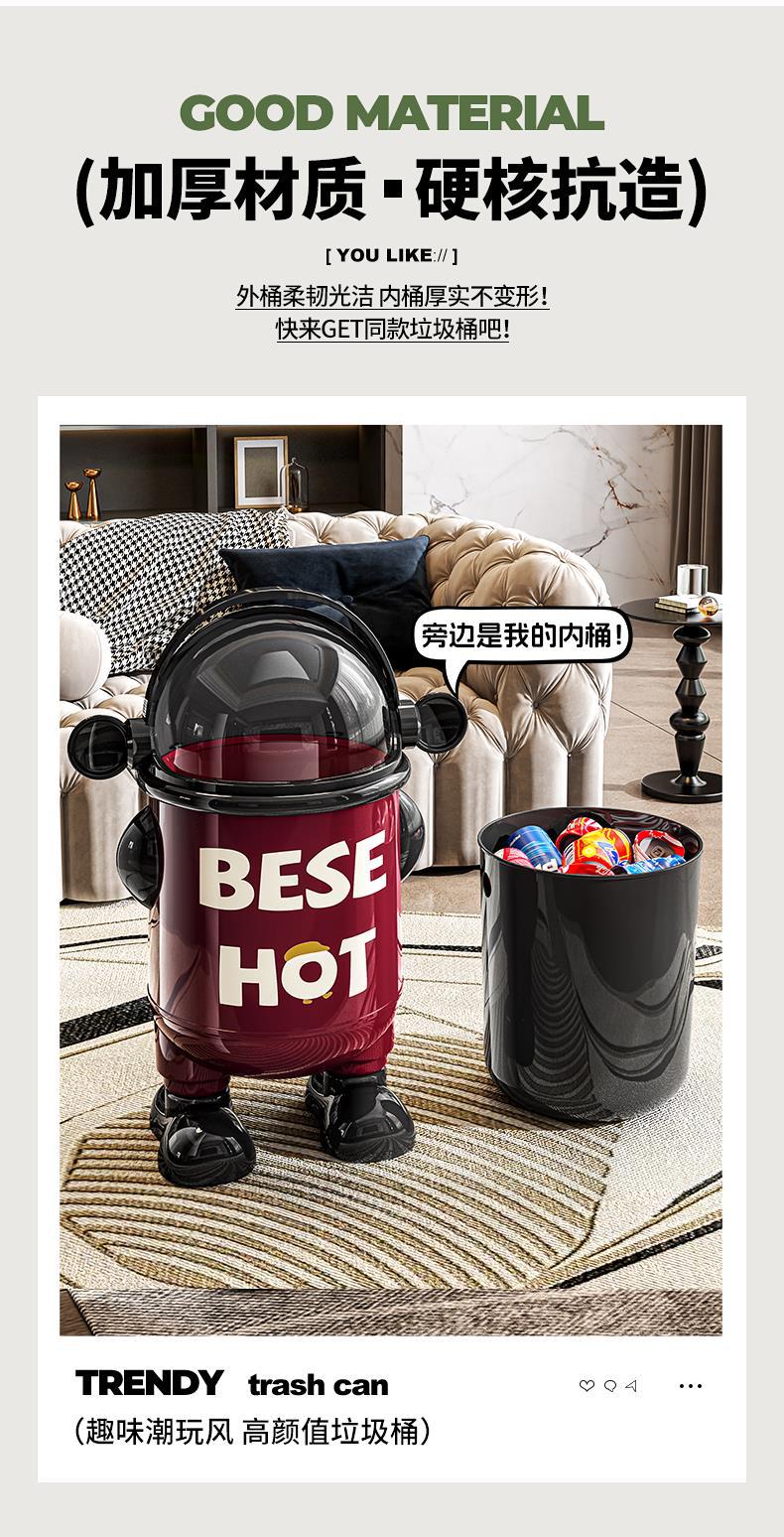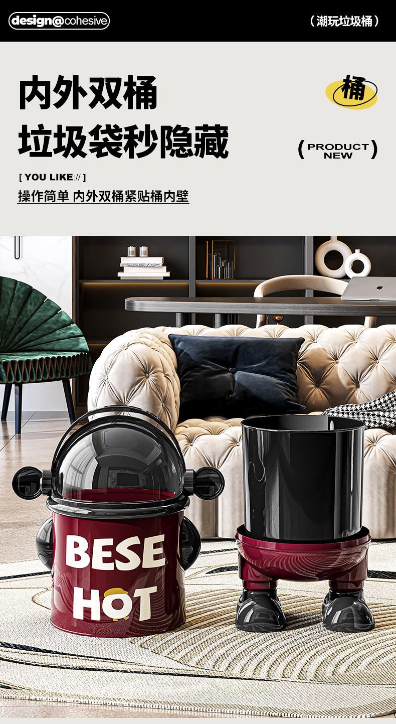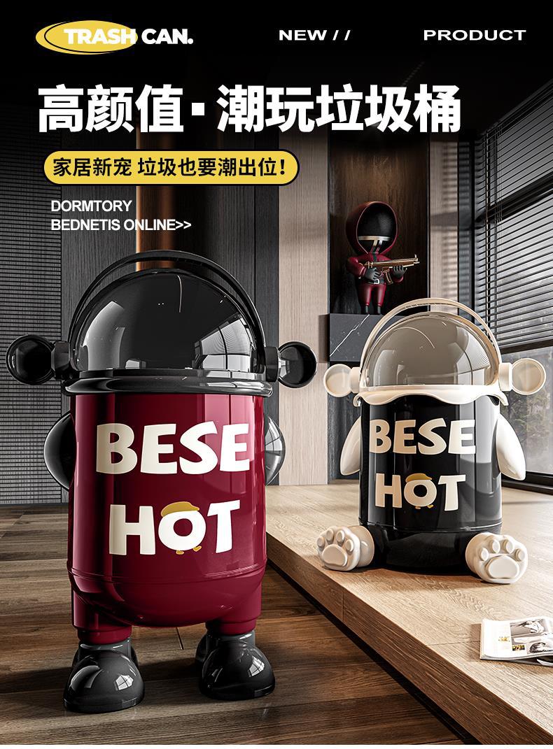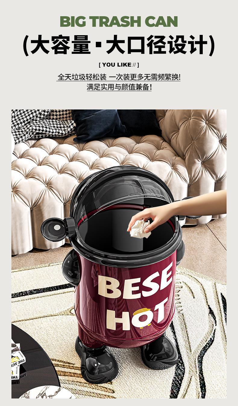垃圾桶家用2025新款創意可愛高顔值帶輪客廳廚房臥室衛生間收納桶