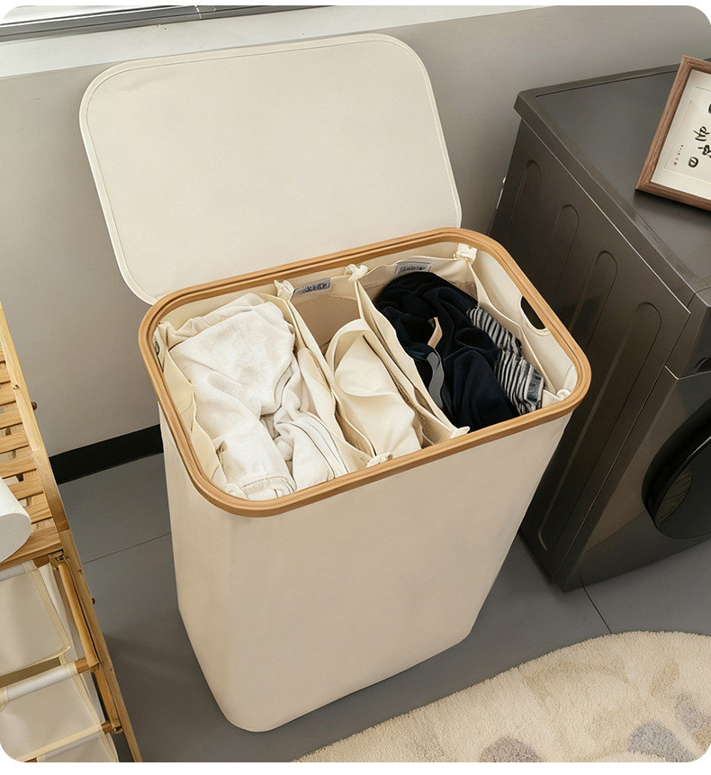家用髒衣籃大容量洗衣籃配內袋帶蓋可折曡髒衣服收納筐髒衣簍