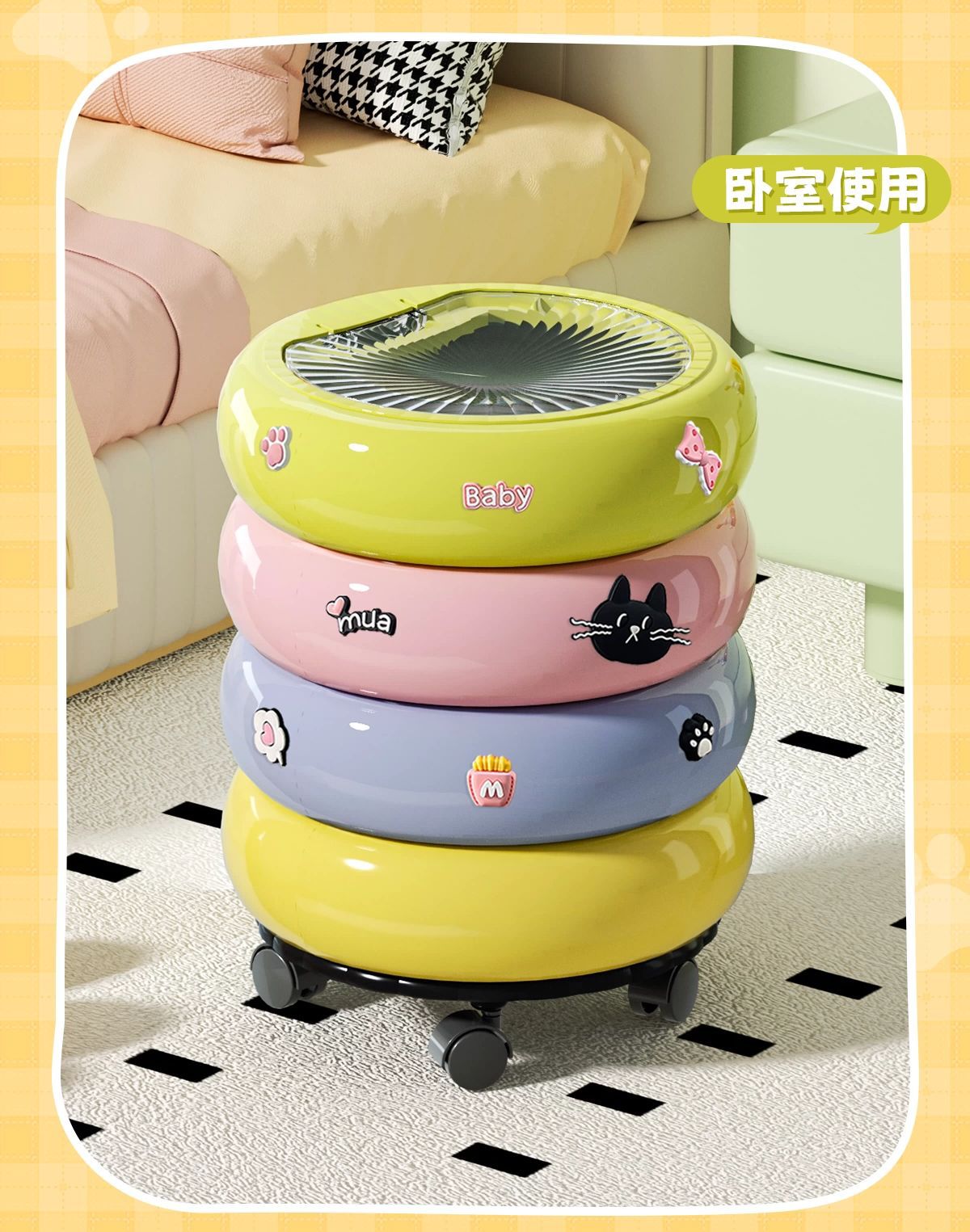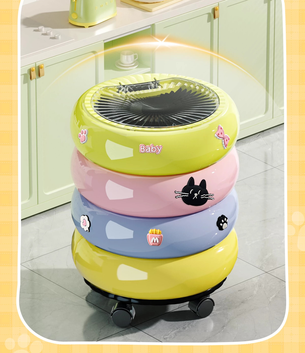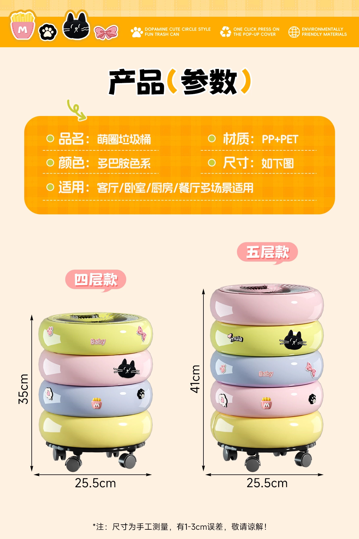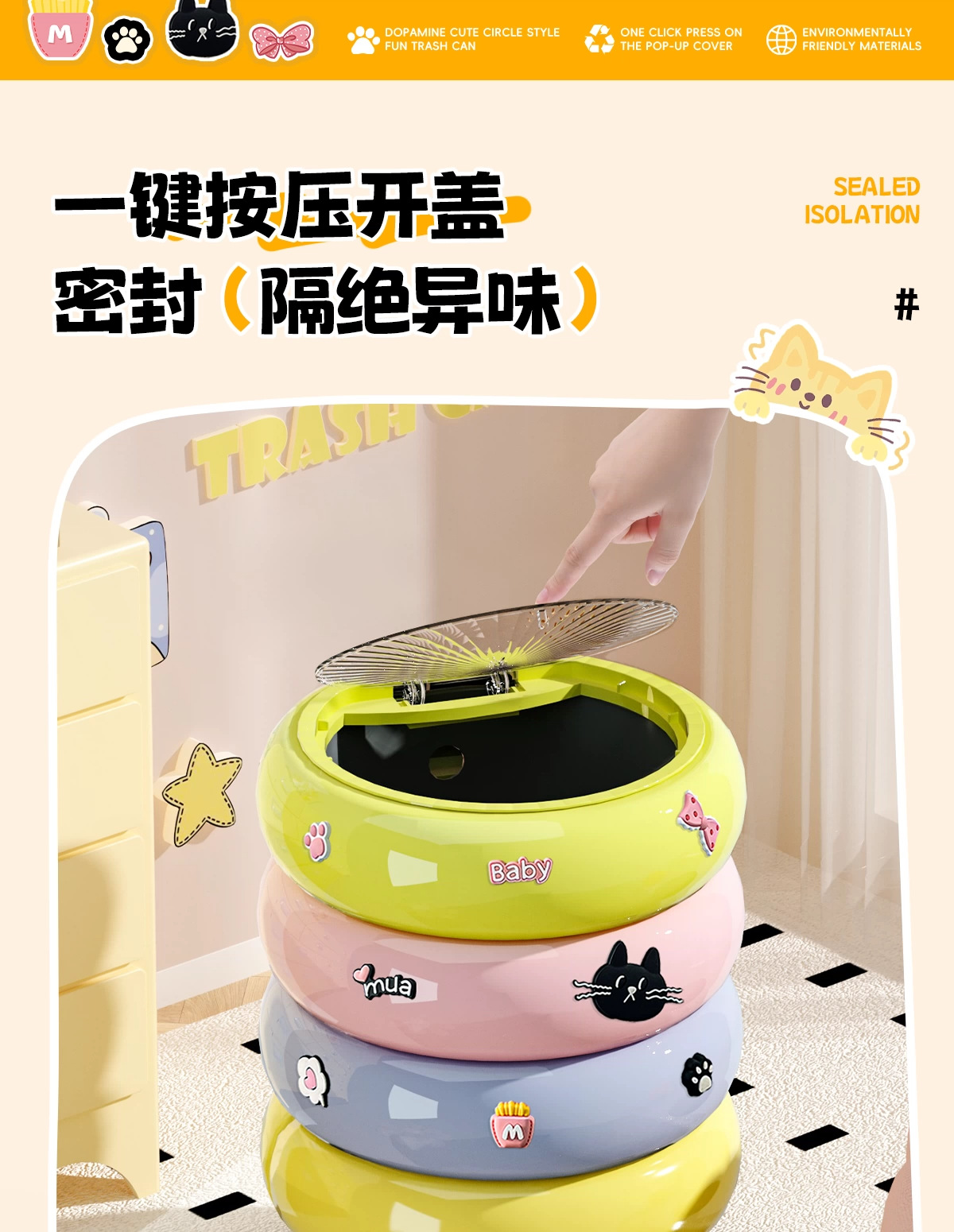 垃圾桶家用客廳廚房輕奢高檔帶蓋甜甜圈收納桶卡通可愛可移動紙簍