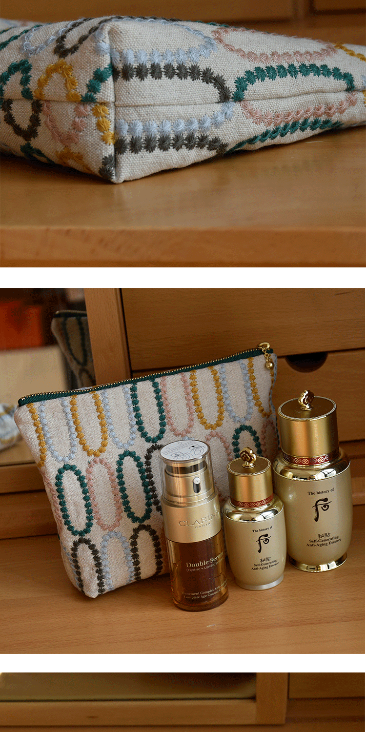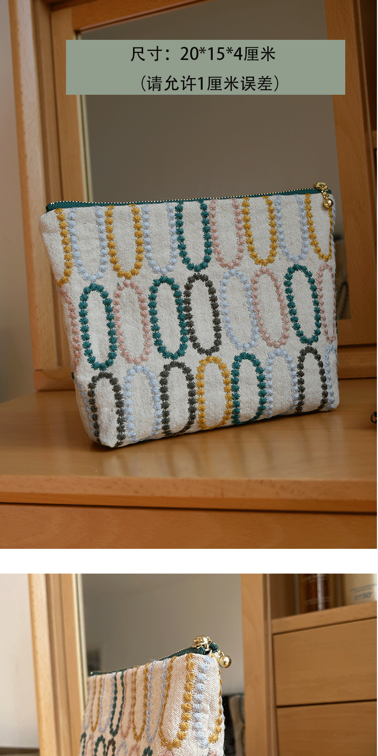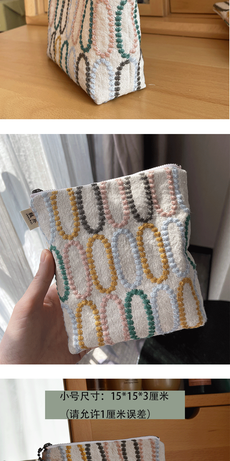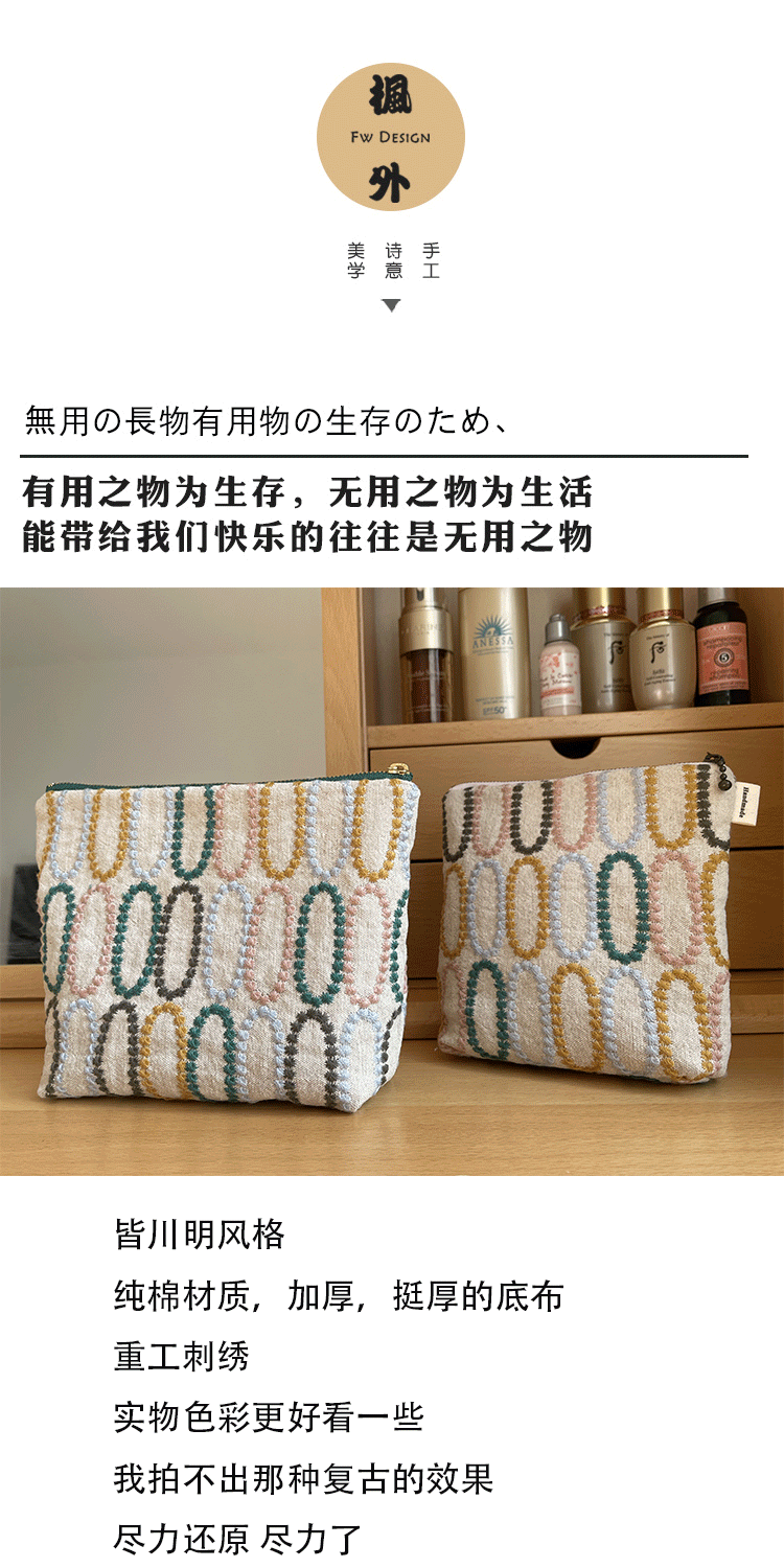 皆川明風格 化妝包布藝刺綉 大容量出差旅行收納包 女士手拿包