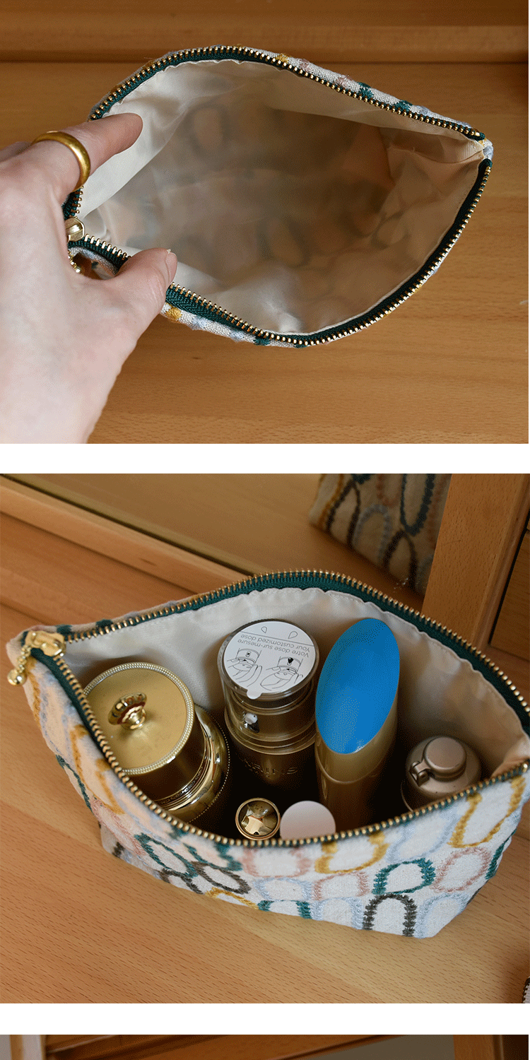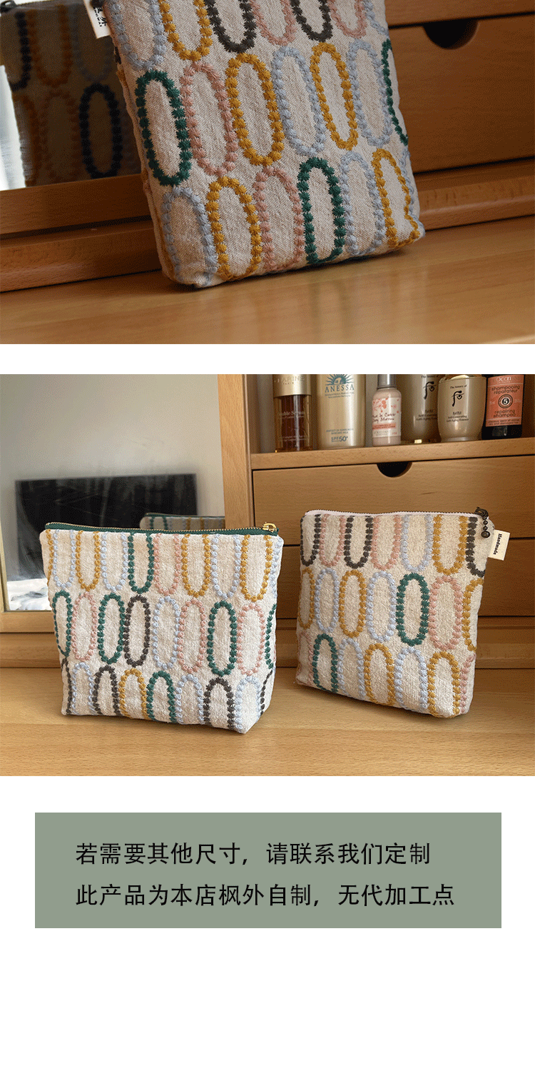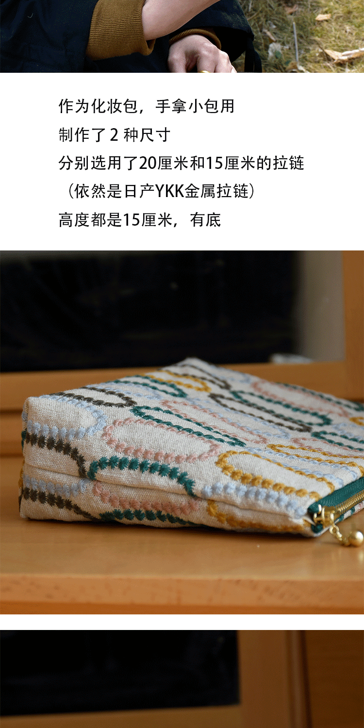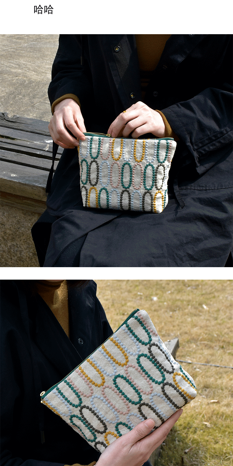 皆川明風格 化妝包布藝刺綉 大容量出差旅行收納包 女士手拿包