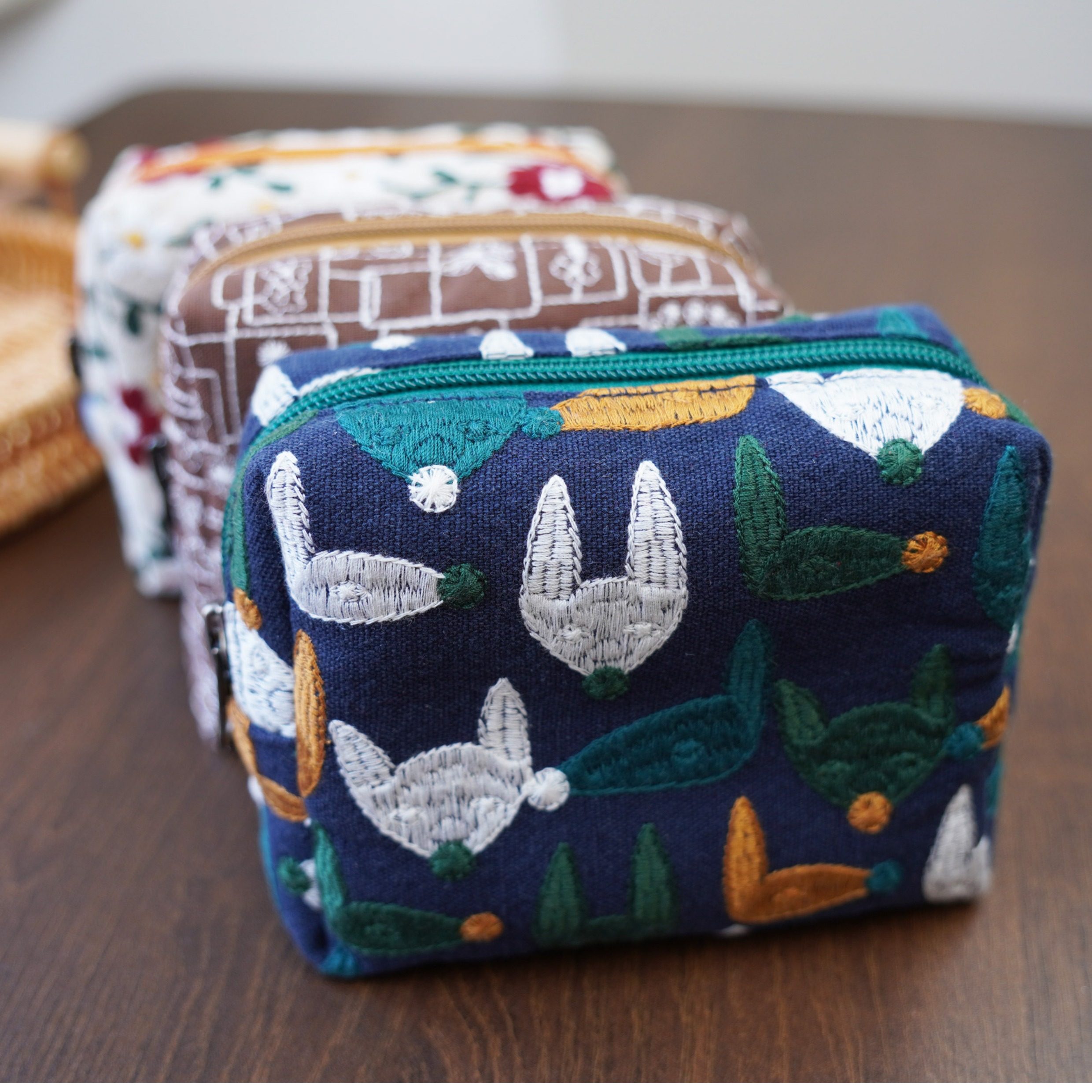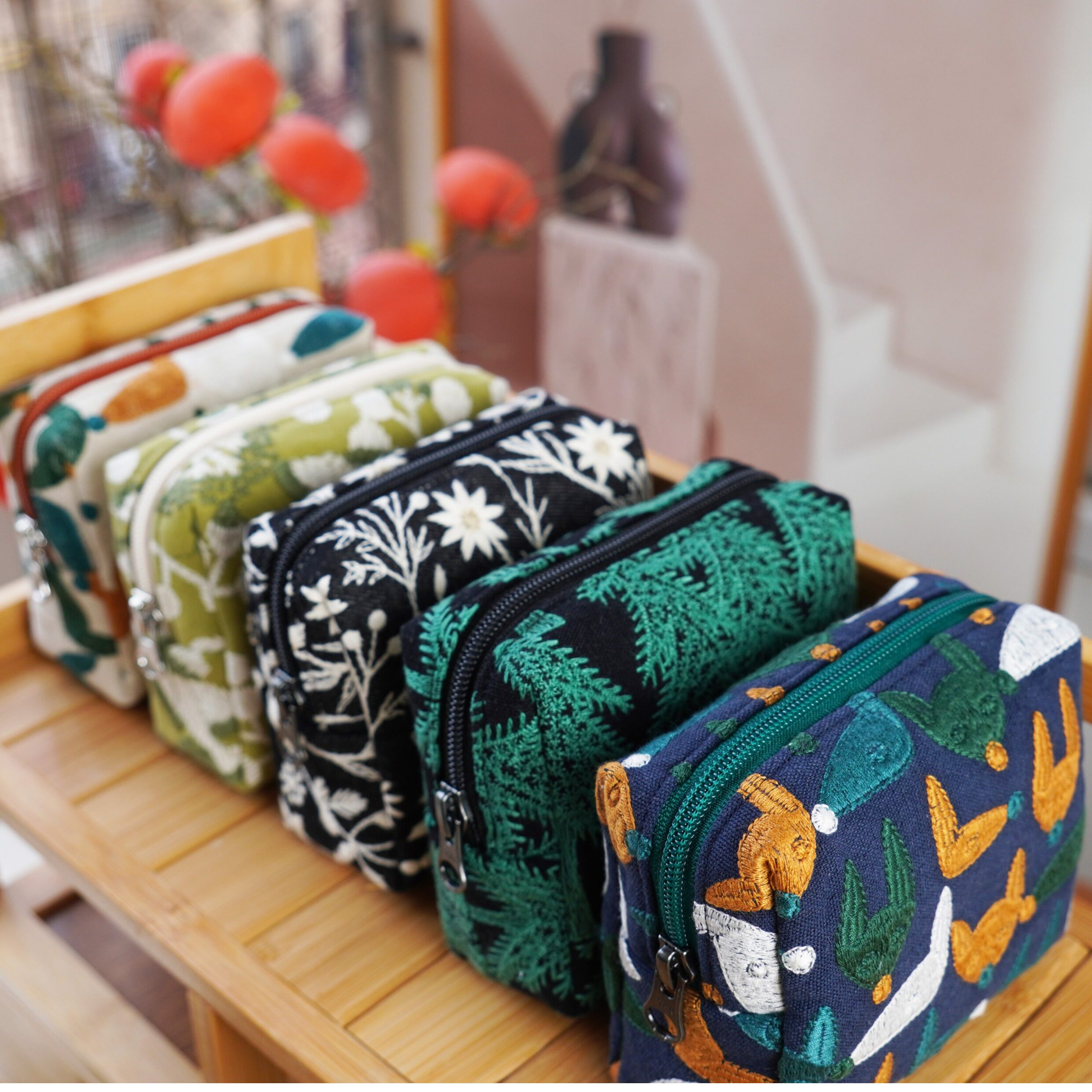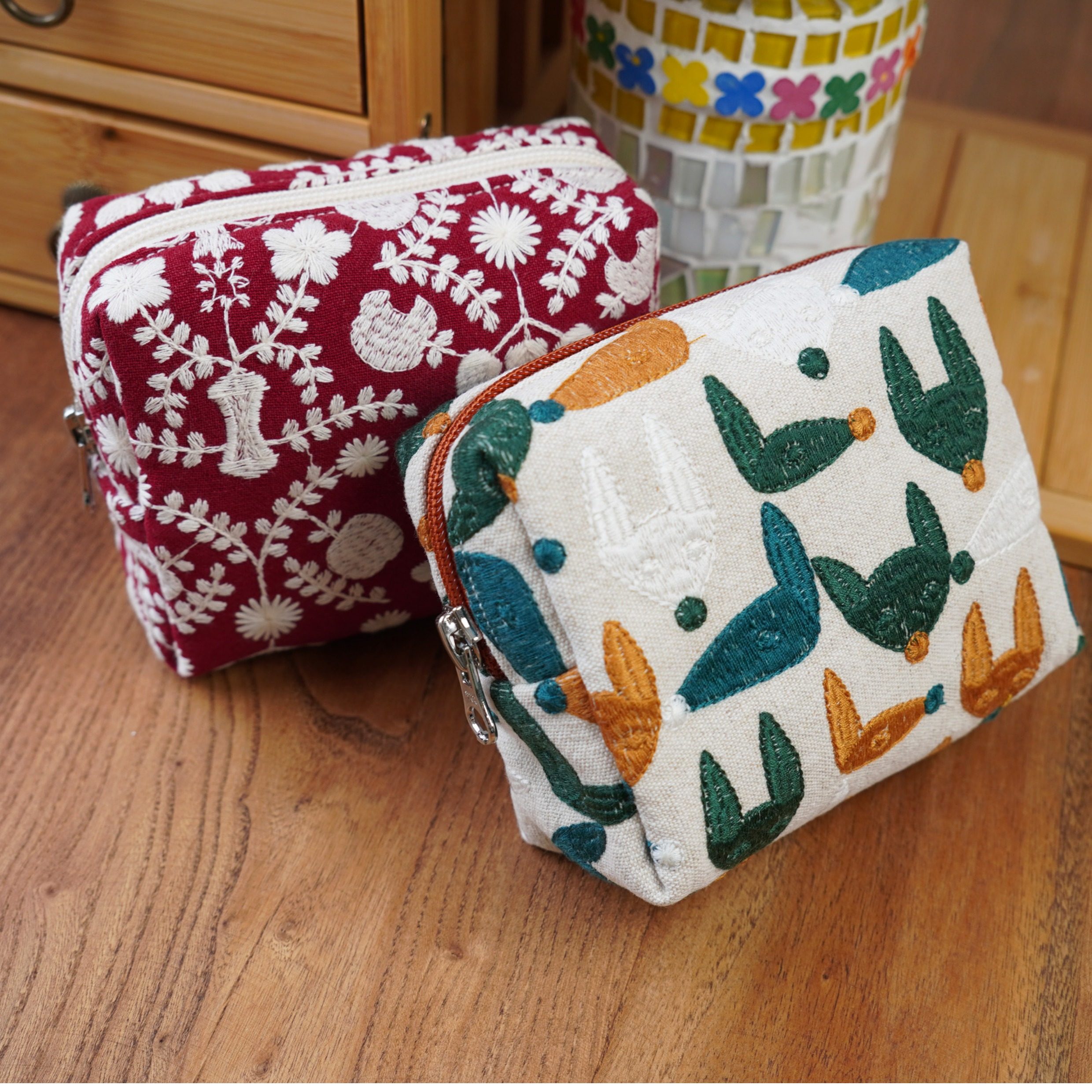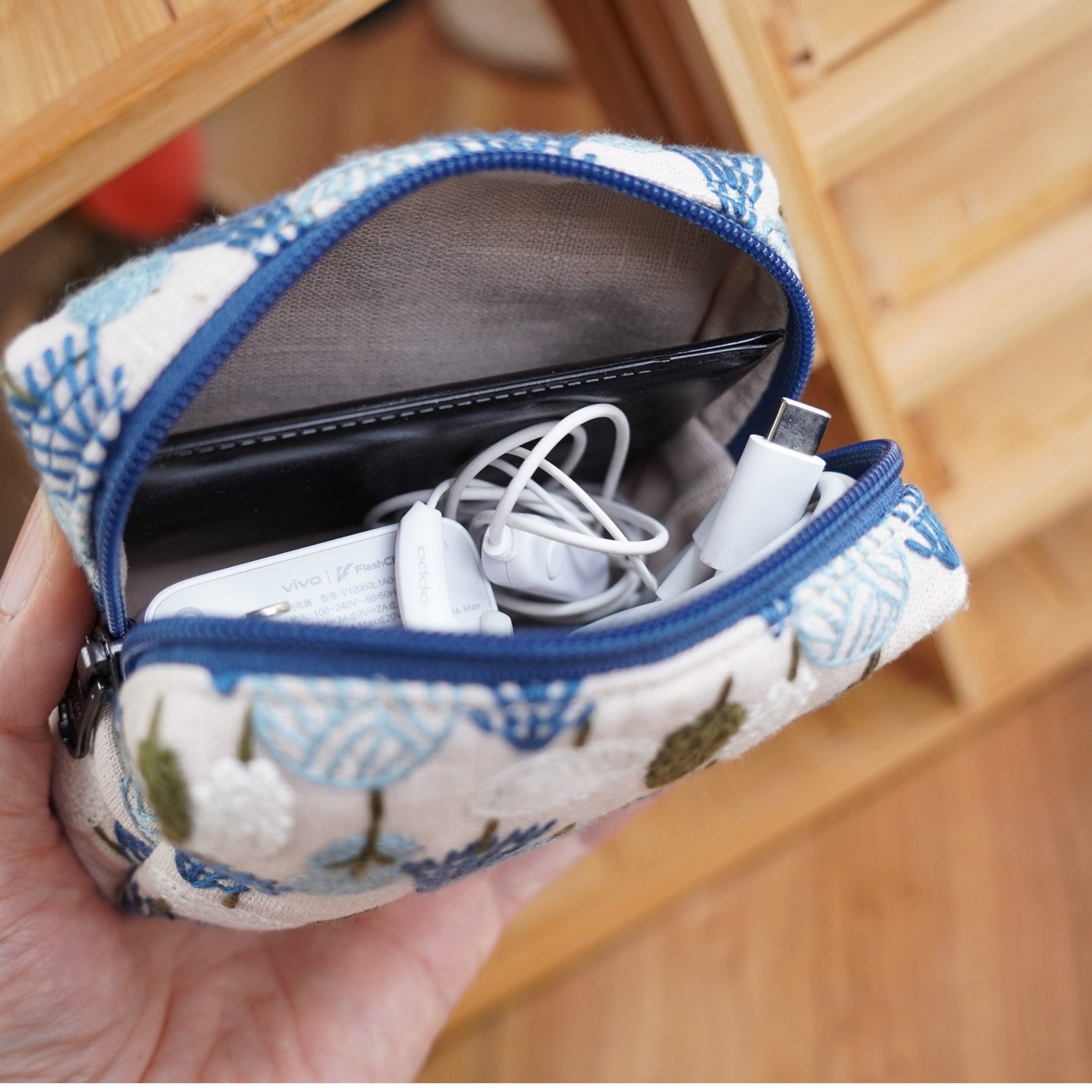 原創刺綉收納包女2025新款輕便迷你數據線包化妝包方形收納包