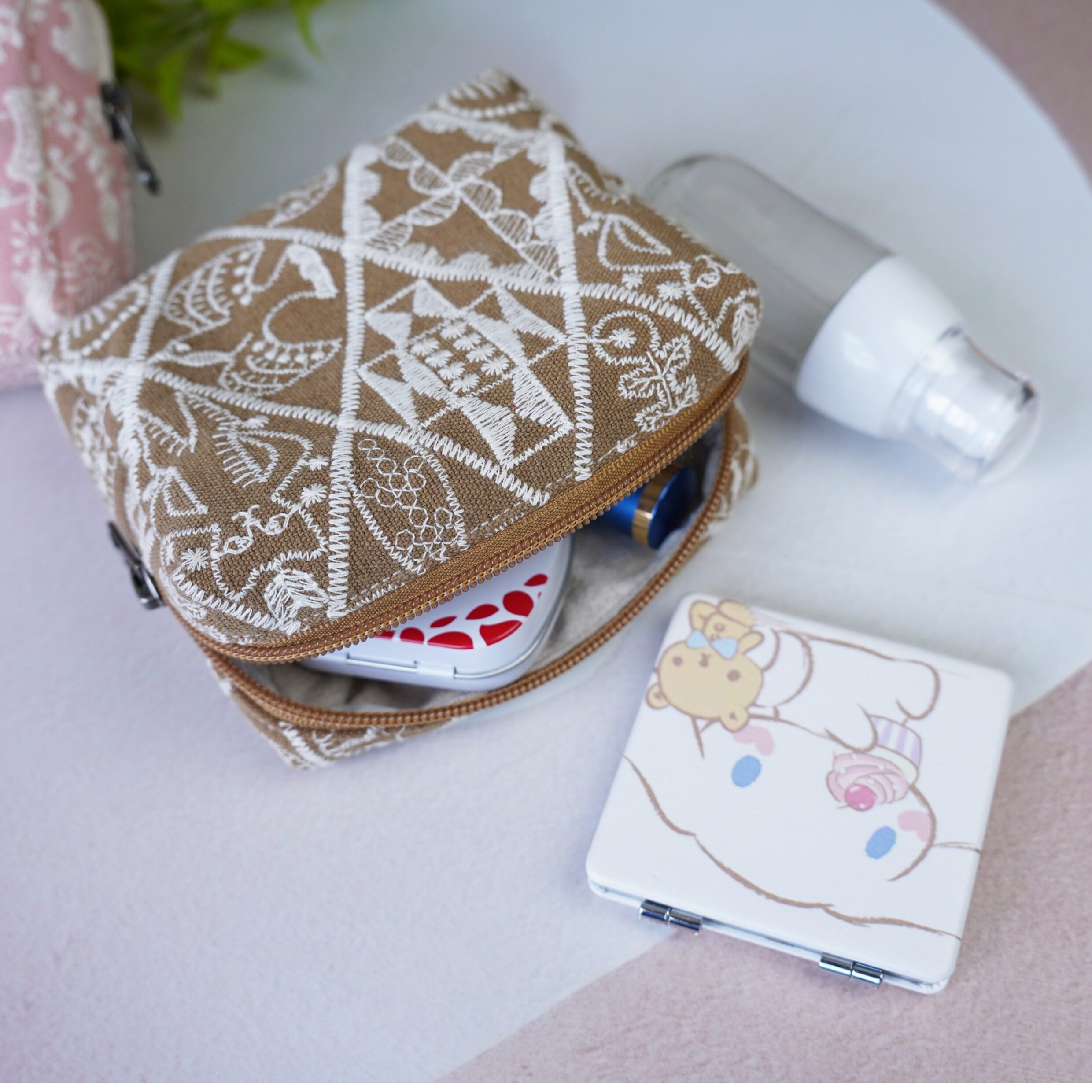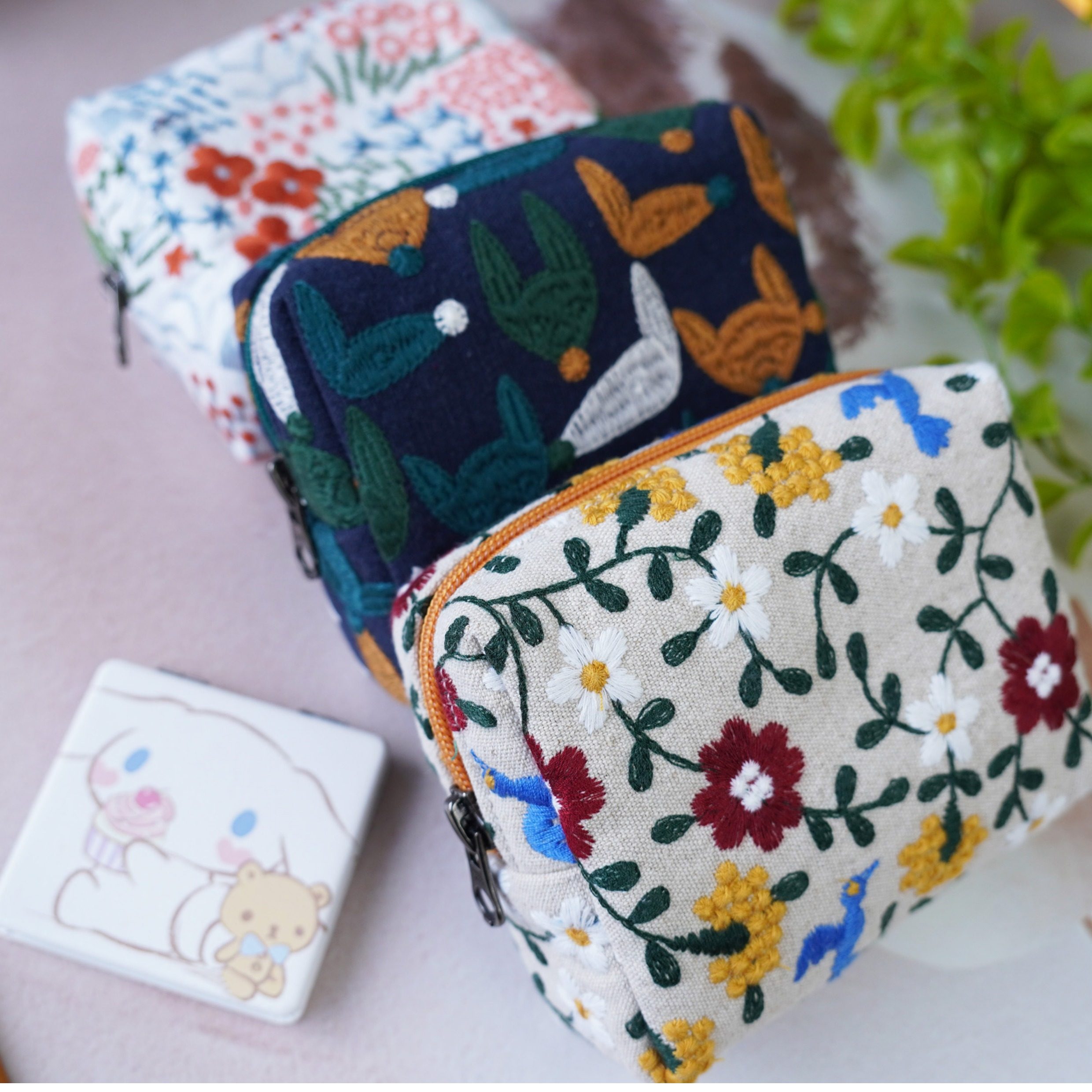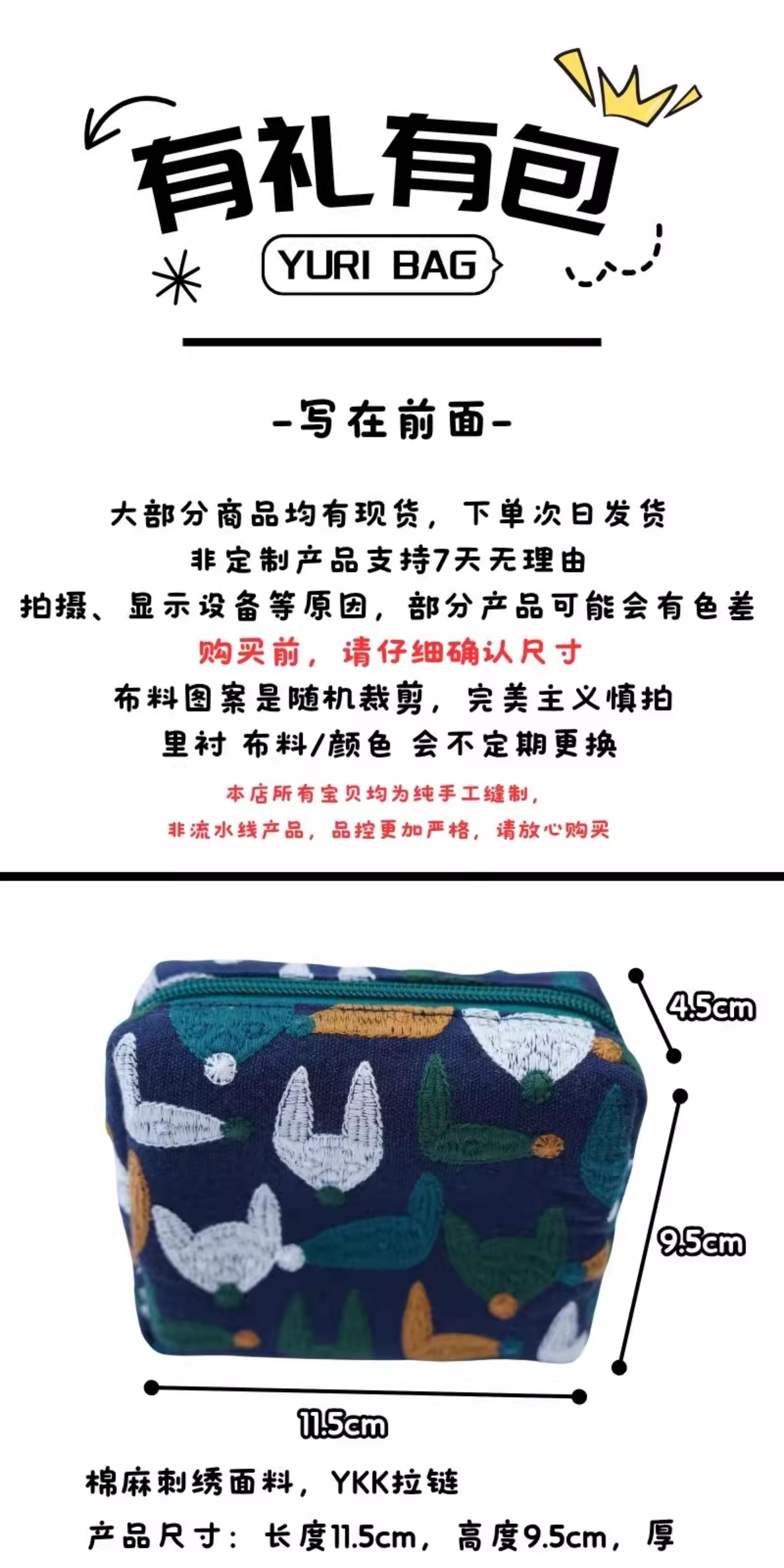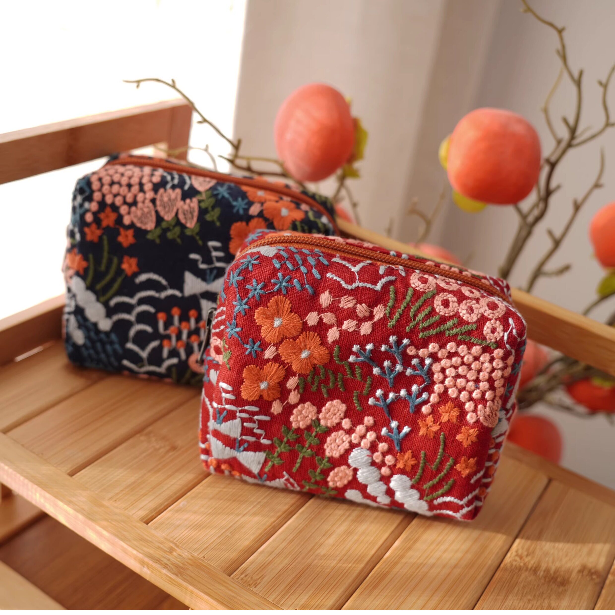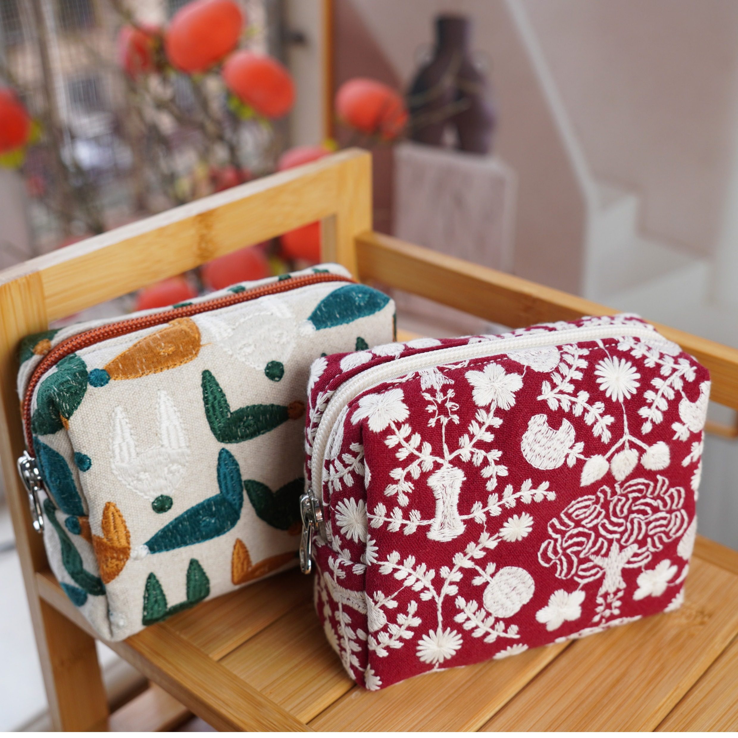 原創刺綉收納包女2025新款輕便迷你數據線包化妝包方形收納包