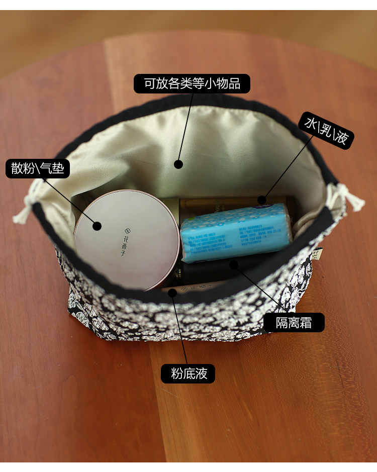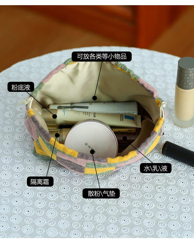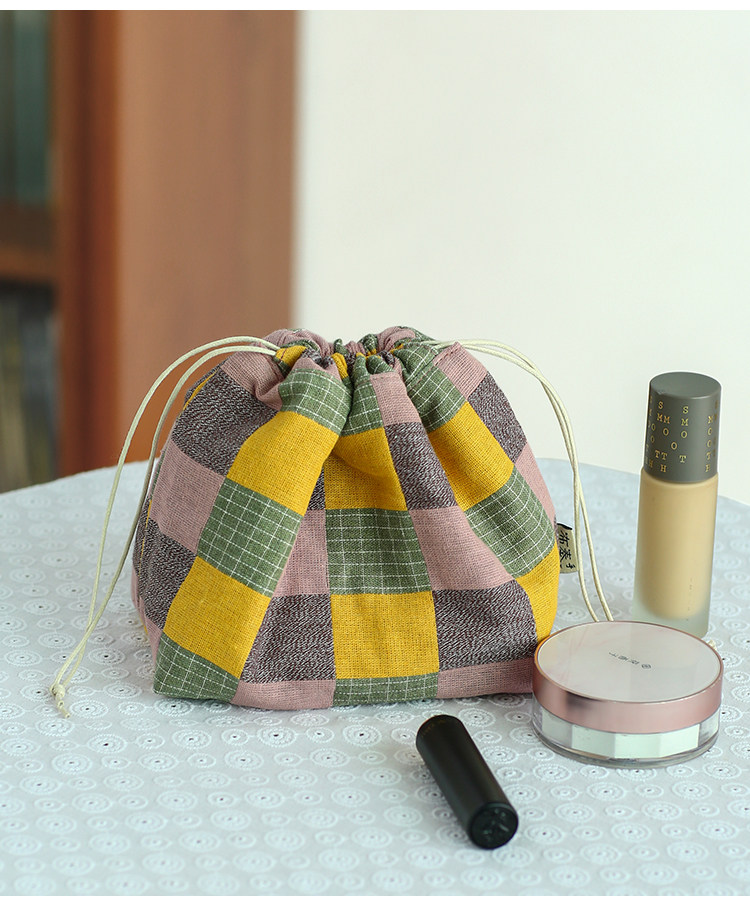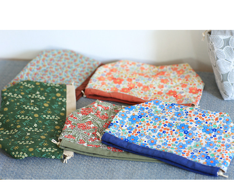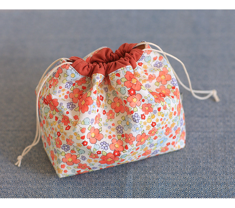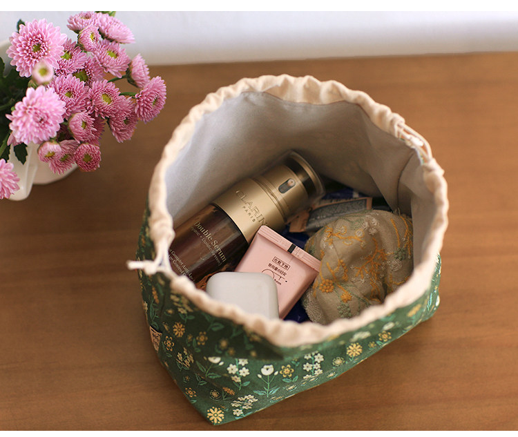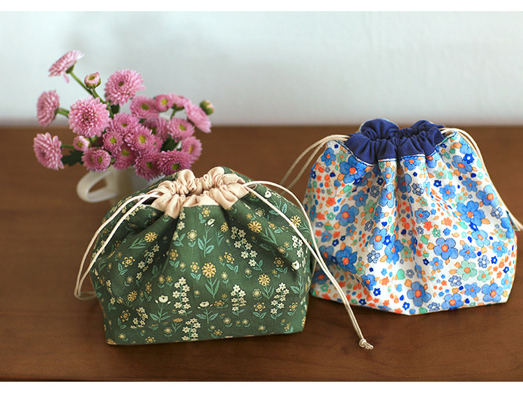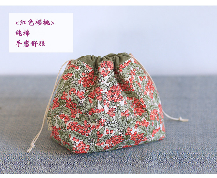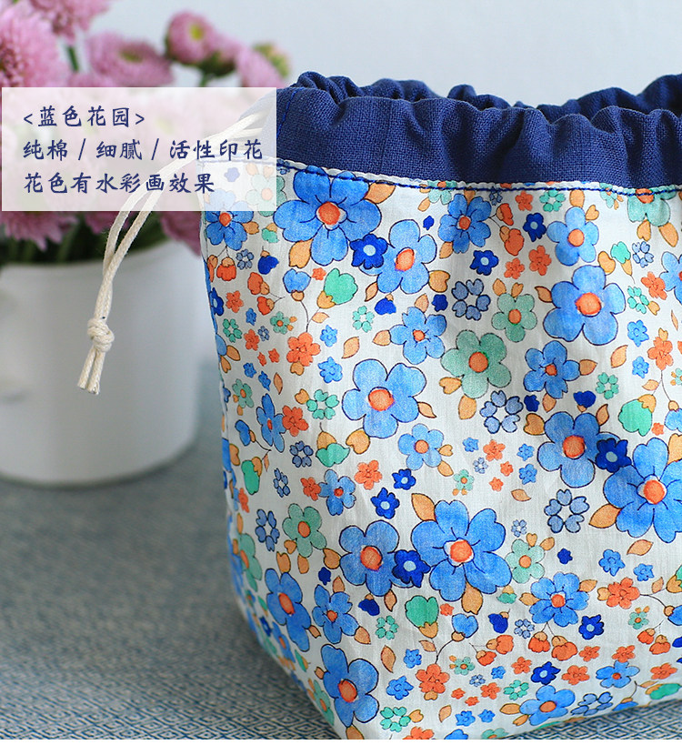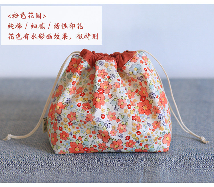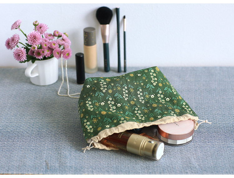布奏手工碎花棉麻收納袋小包化妝包零錢包束口包小清新抽繩布袋