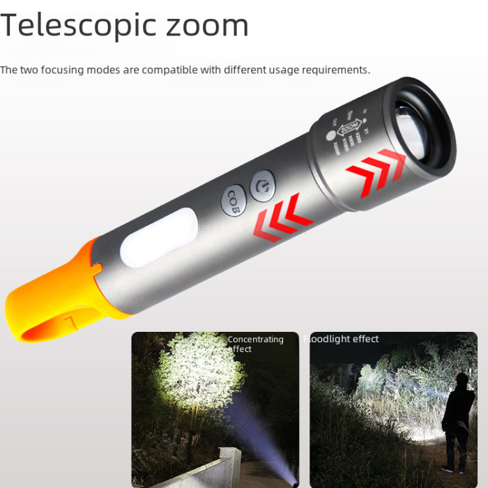 新品LED手電筒白聚光 Type-C充電鋁合金伸縮變焦爆款迷你電筒