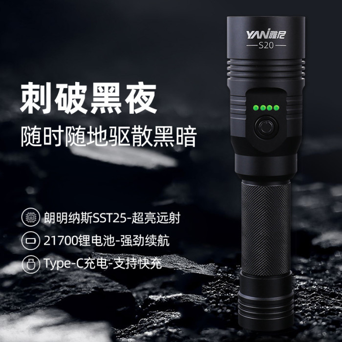 雅尼S20強光手電筒充電式戶外超亮遠射家用耐用應急超長續航