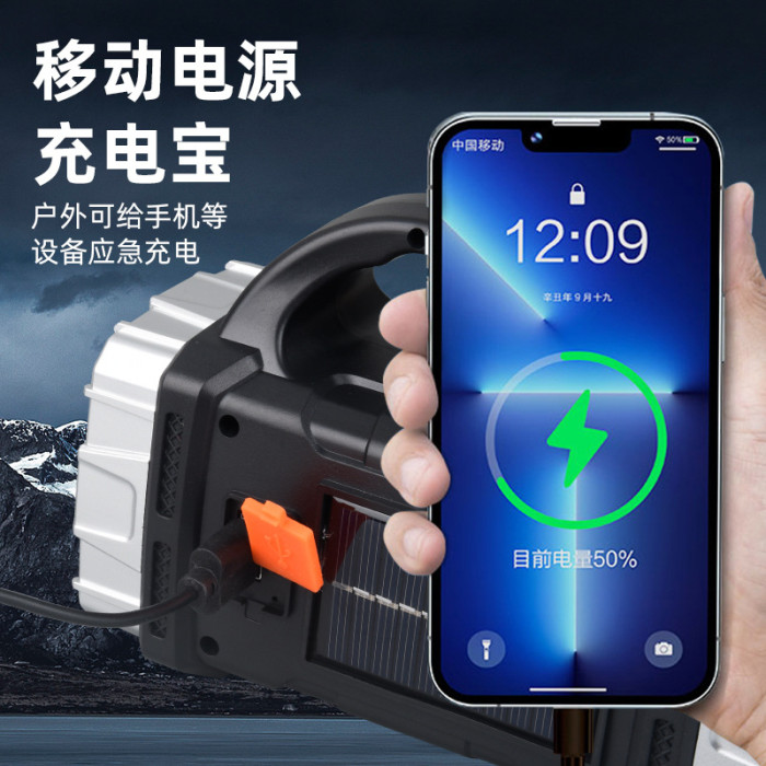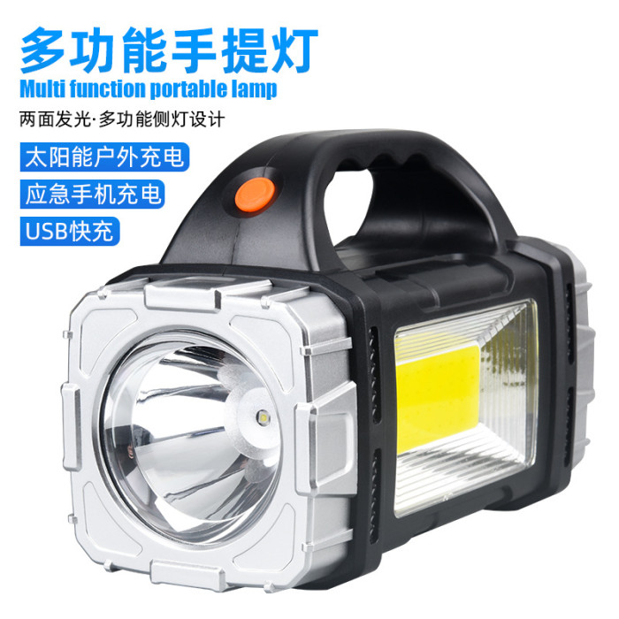新款多功能手提燈強光手電筒戶外太陽能充電LED照明燈可攜式探照燈