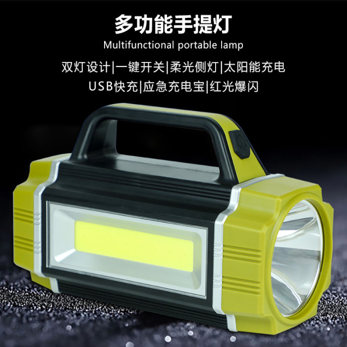 多功能太陽能手提燈戶外強光遠射USB充電大容量探照燈應急露營燈