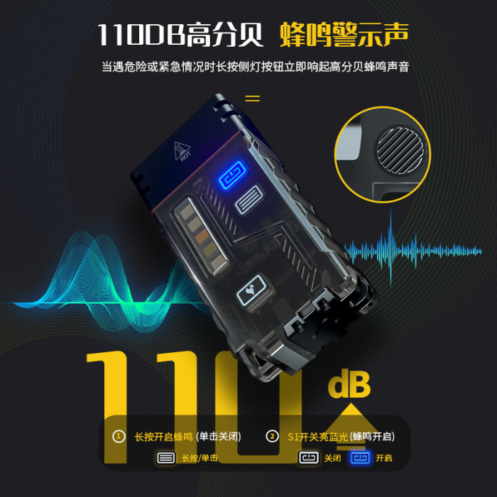 強光手電筒戶外野營點火小燈蜂鳴警報紅藍黃白紫多光源小手電