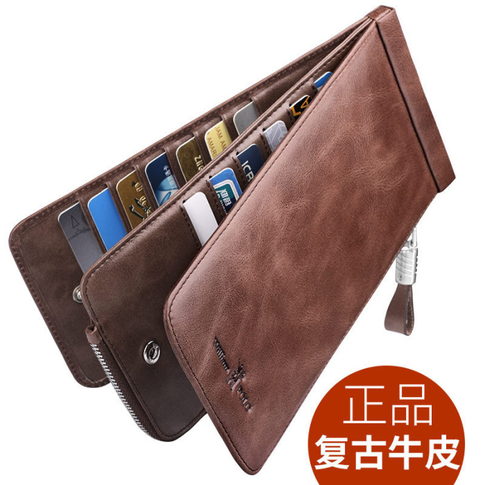 英皇保羅真皮卡包男士多卡位超薄錢包長款商務簡約大容量卡包男款