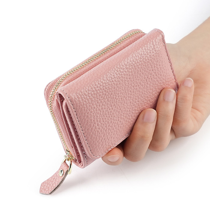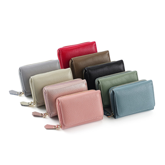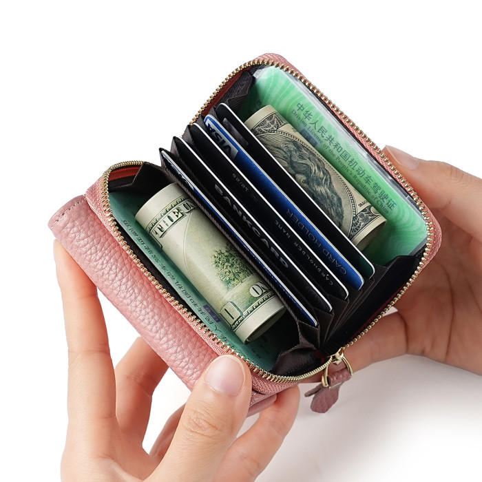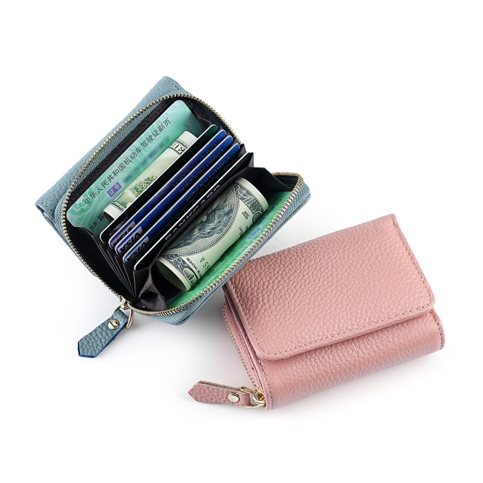 新款日式風琴卡包三折防盜刷男女士錢包頭層牛皮手拿包零錢包真皮