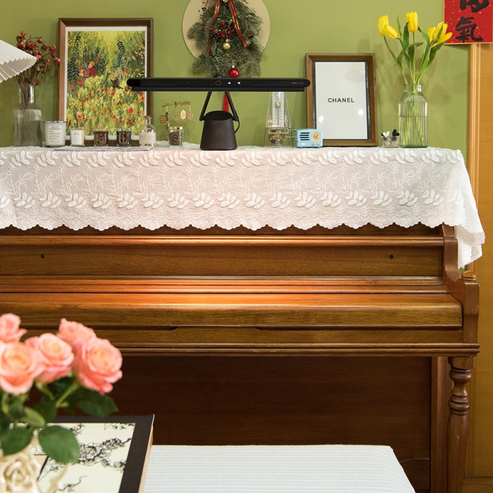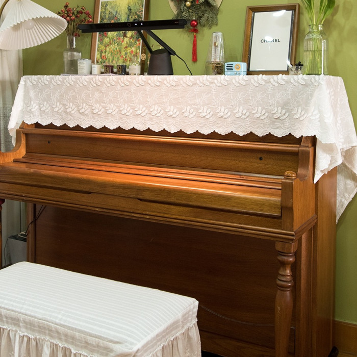 淺枝素意鋼琴罩白色蕾絲半罩法式防塵保護全罩電子琴凳罩布