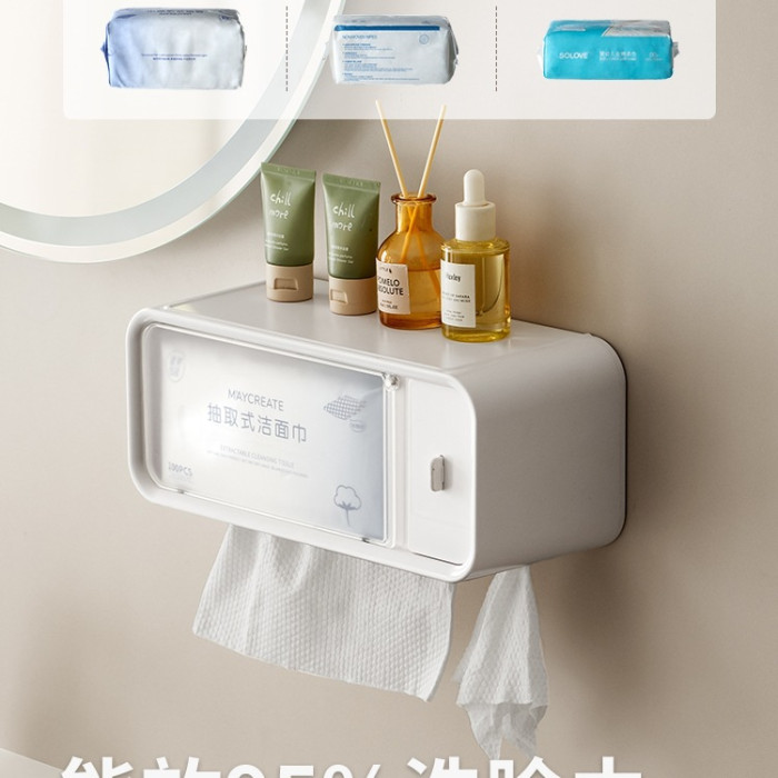 洗臉巾收納盒壁掛式一次性潔面紙巾化妝棉衛生間厠所置物架