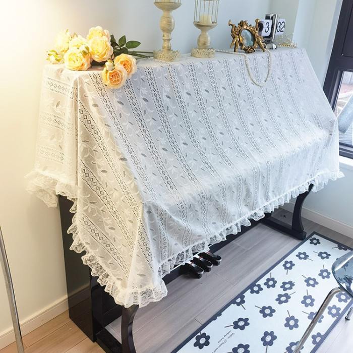 田園鋼琴布蓋布蕾絲電鋼琴罩半罩防塵罩全罩荷葉花邊公主琴