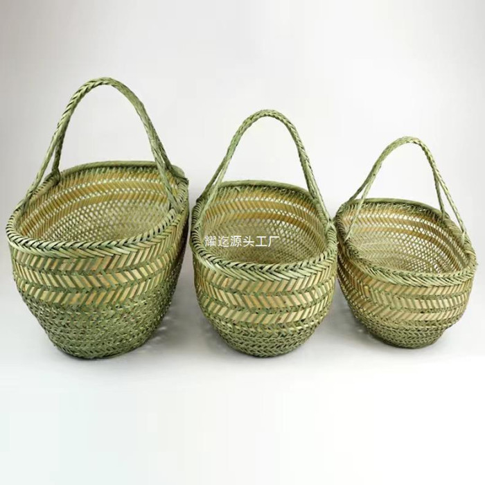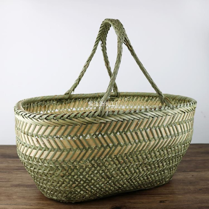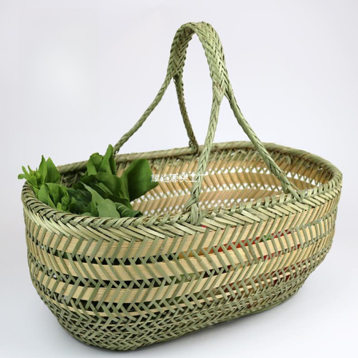 竹編竹籃手提買菜籃子手工竹筐水果籃雞蛋籃廚房收納筐家用購物籃