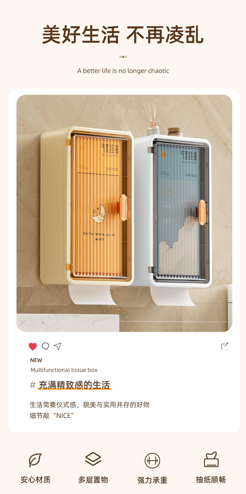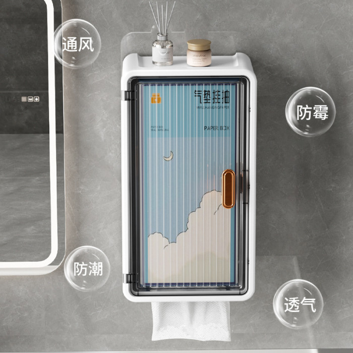 衛生間厠紙盒免打孔厠所衛生紙置物架壁掛式防水衛生巾收納紙巾盒