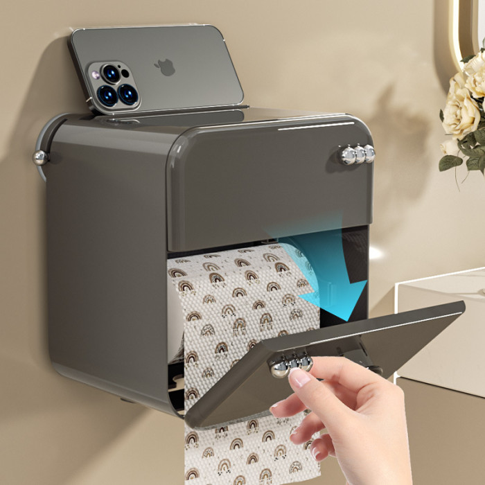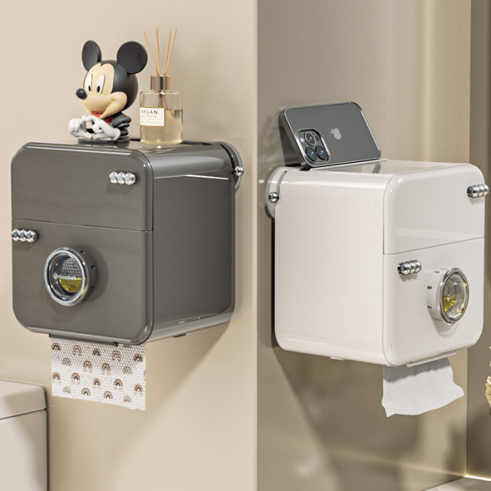 衛生間厠紙盒吸盤香薰壁掛免打孔防水收納盒厠所雙層抽紙卷紙巾盒