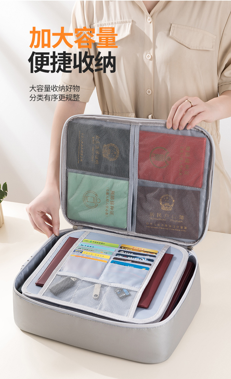 新款大容量防火証件收納包多功能文件整理包護照檔案包旅行收納包