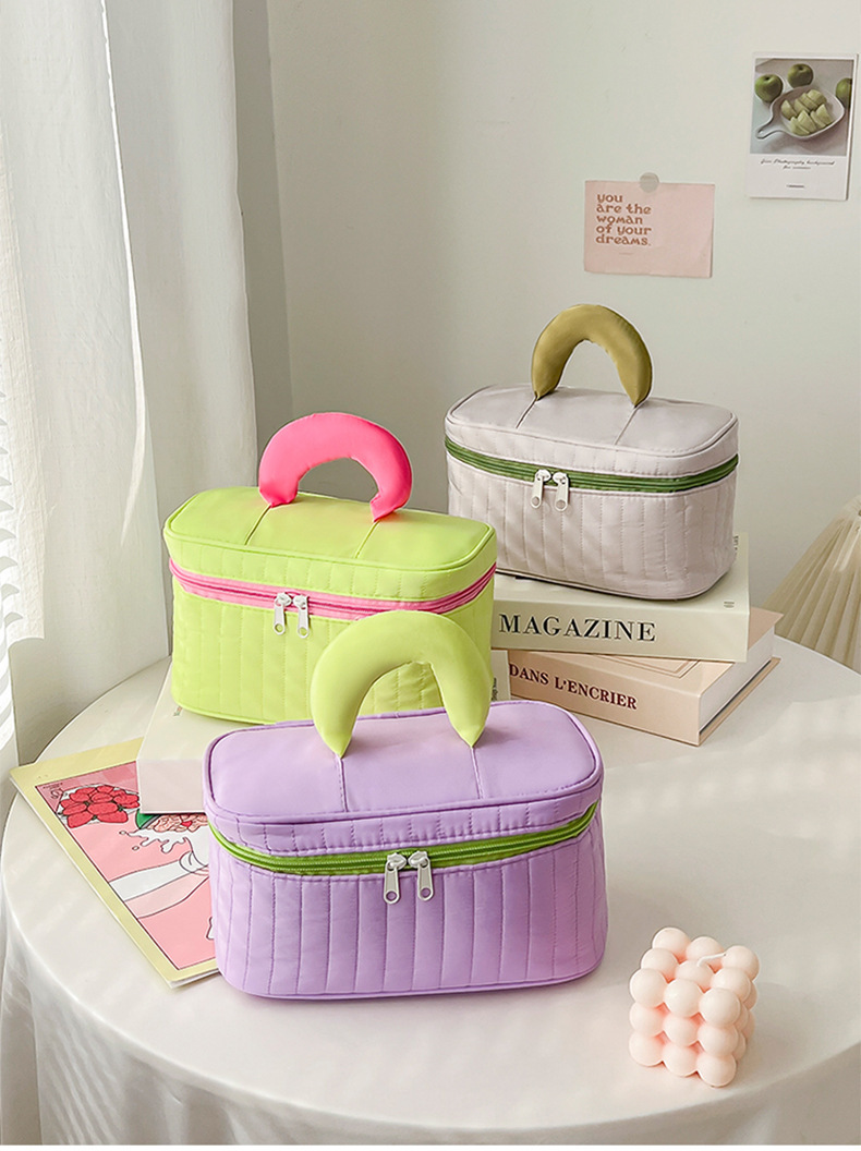 新款小衆設計手提撞色化妝包大容量高級感洗漱包可攜式化妝品收納包