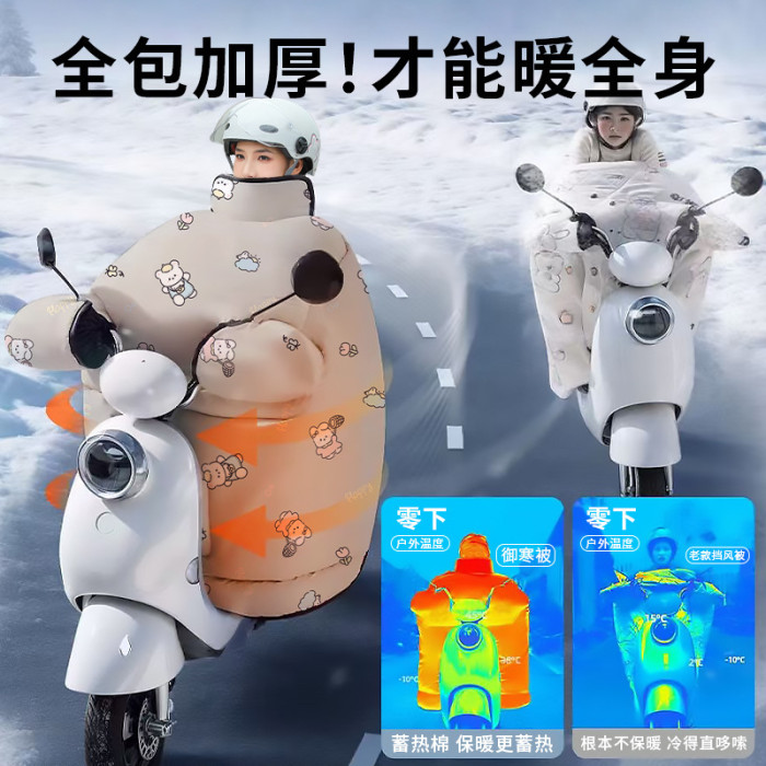 電動車擋風被冬季鬭篷式加絨加厚保暖電瓶車防風被冬季加厚帶擋腿