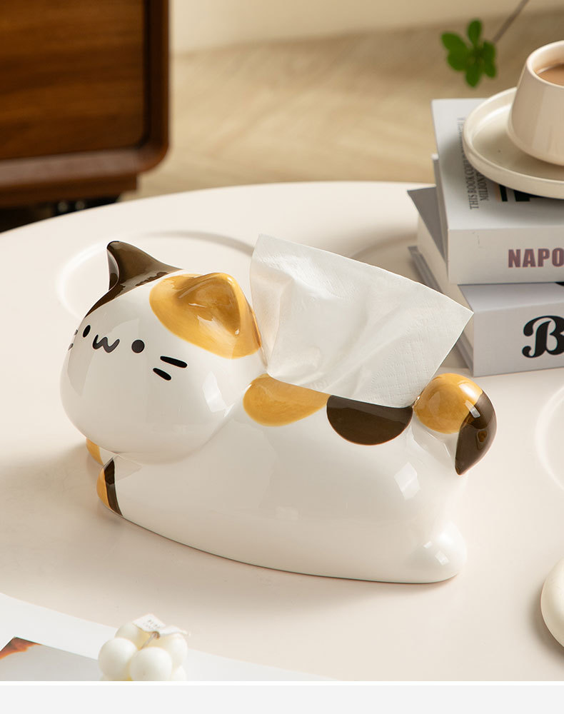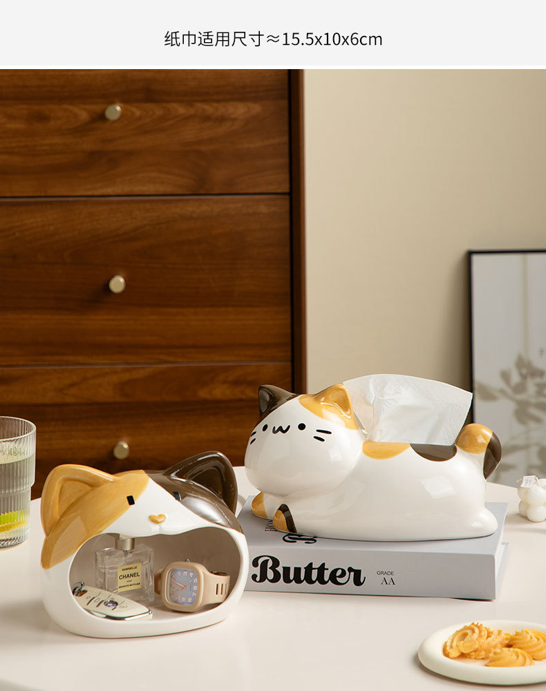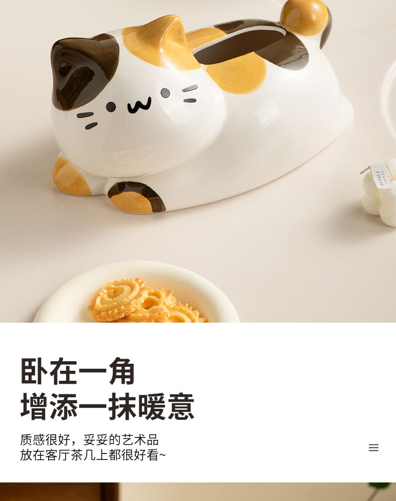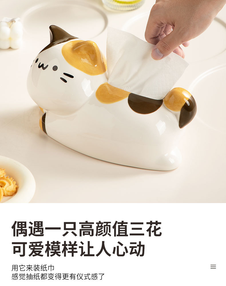 翹尾貓奶油風可愛紙巾盒客廳輕奢餐巾紙盒陶瓷抽紙盒創意茶幾擺件