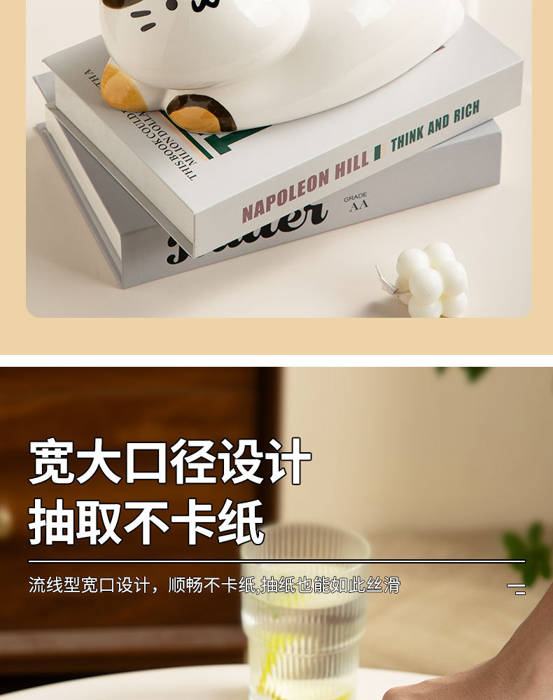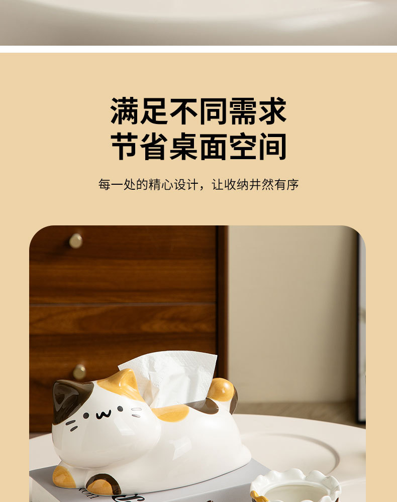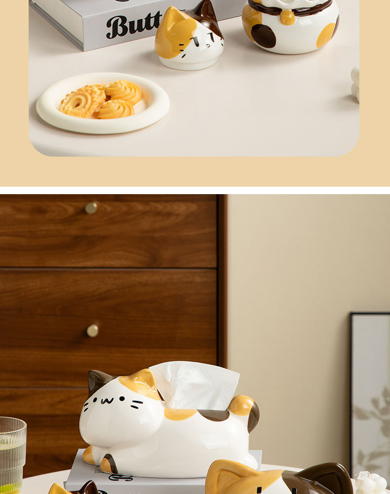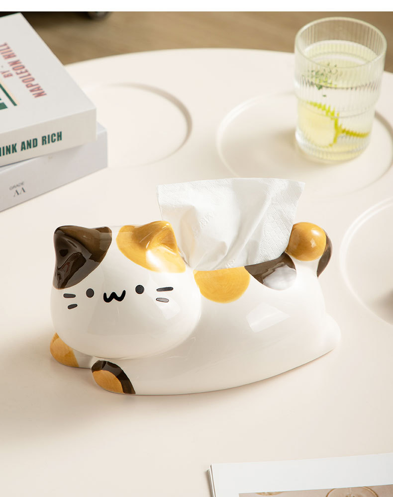 翹尾貓奶油風可愛紙巾盒客廳輕奢餐巾紙盒陶瓷抽紙盒創意茶幾擺件
